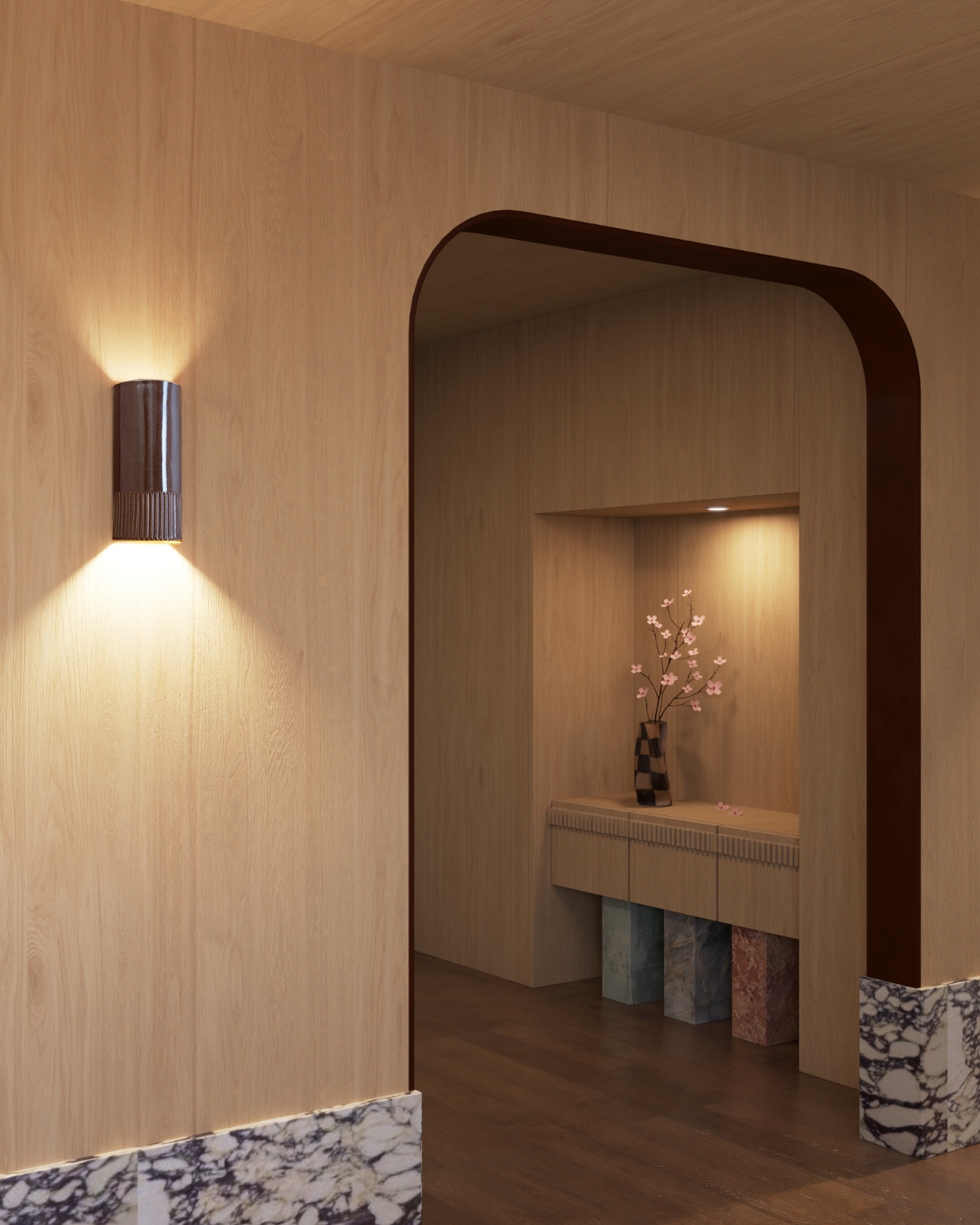 Handmade Ceramic Gloss Wall Light | Day Outside a spa Choccy Milk