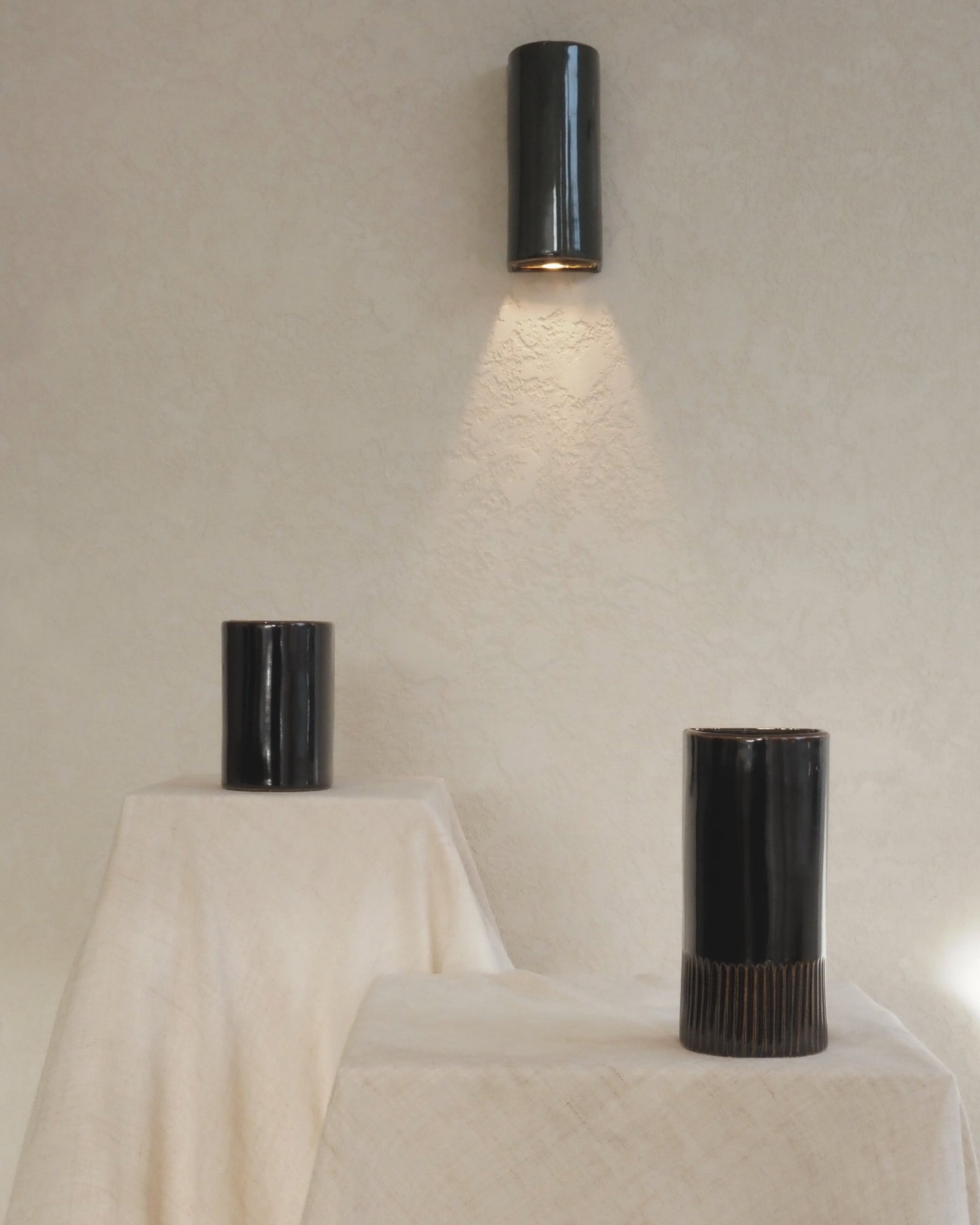 Handmade Ceramic Gloss Wall Light | Day Tommy Jam Tall Light Off midnight snack detail