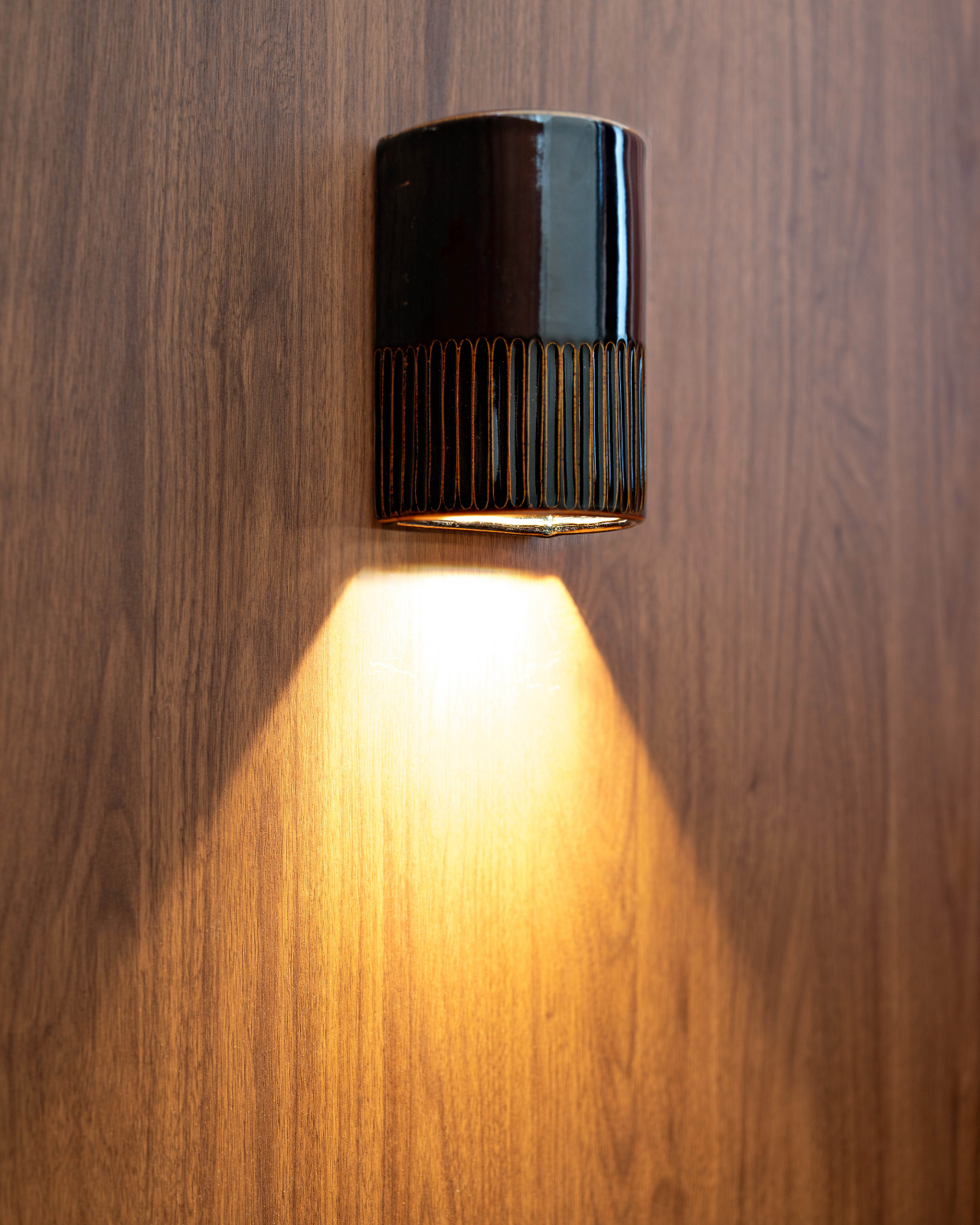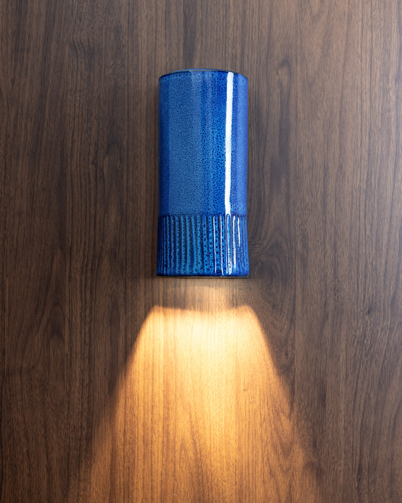 Bring character and charm to your space with the beautifully crafted Handmade Ceramic Gloss Wall Light  proudly made in Australia. This artisanal fixture combines warmth and style, casting a soft yet lively downward glow that enhances your room’s atmosphere. Its distinctive lower third features a hand-carved corduroy pattern, adding a tactile layer of visual interest. The smooth ceramic body is finished in a refined, low-sheen eggshell glaze for a perfect balance of durability and elegance. Mounted on a discreet custom back plate, the fitting sits close to the wall, blending seamlessly with any décor.  Available in the Short, or for a more elongated look, the design is also available in a Tall version.