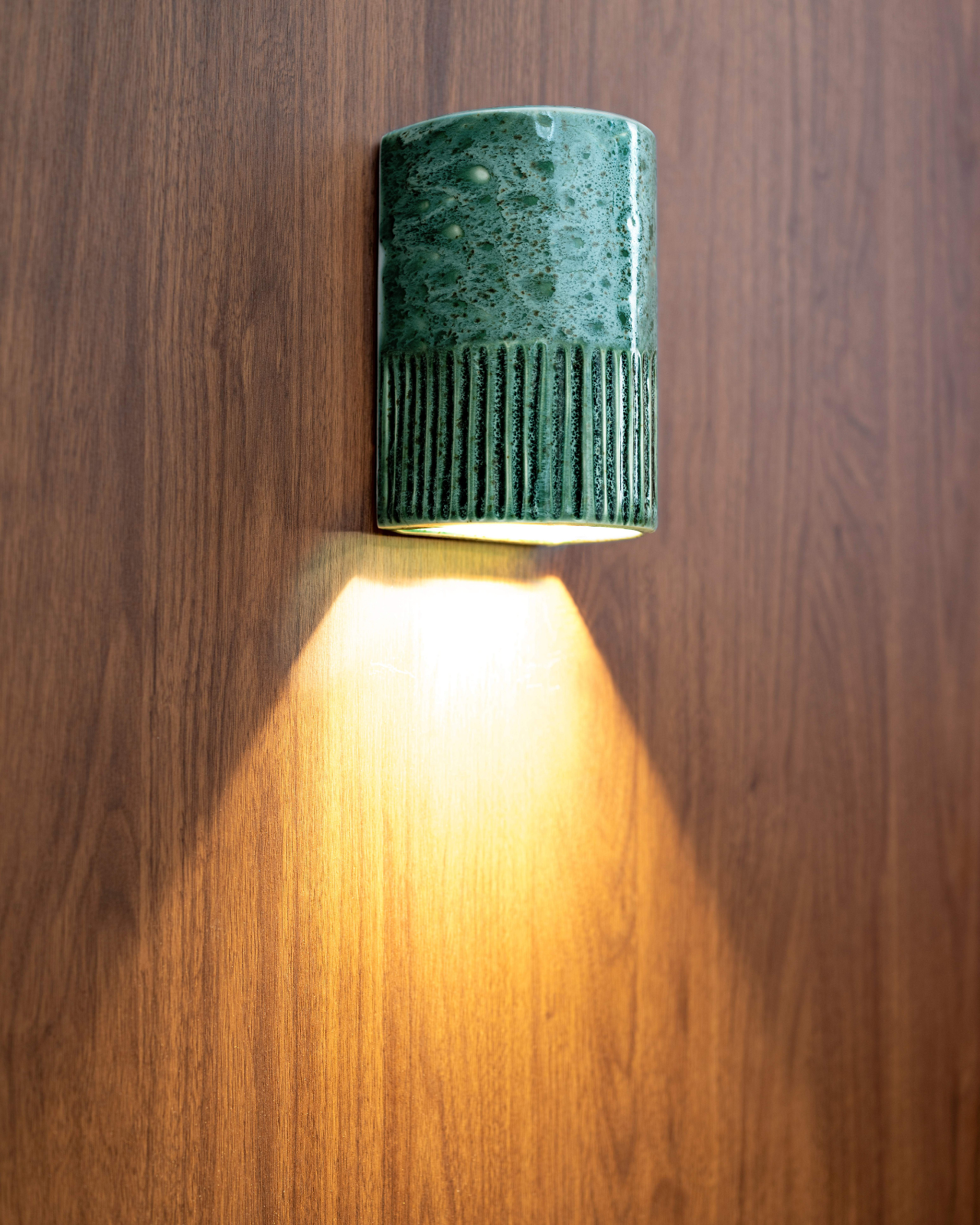 Handmade Ceramic Gloss Wall Light | Day Pickled Olives Tall Light On