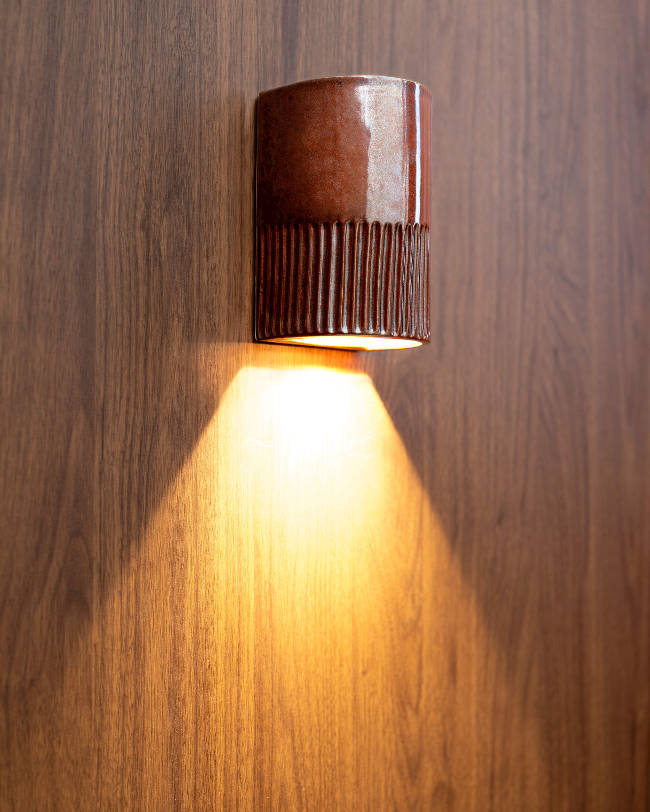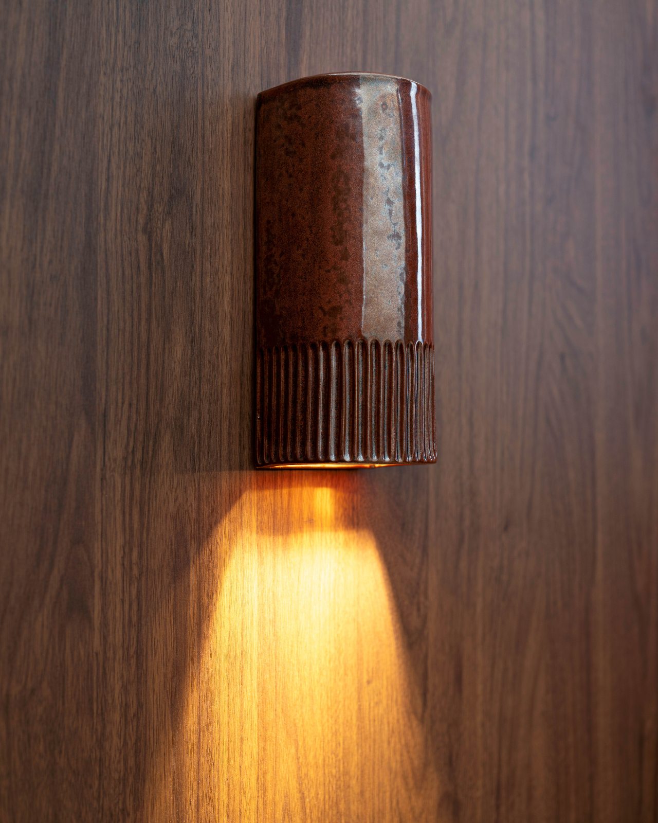 Handmade Ceramic Gloss Wall Light | Day | Tall Burnt Toast