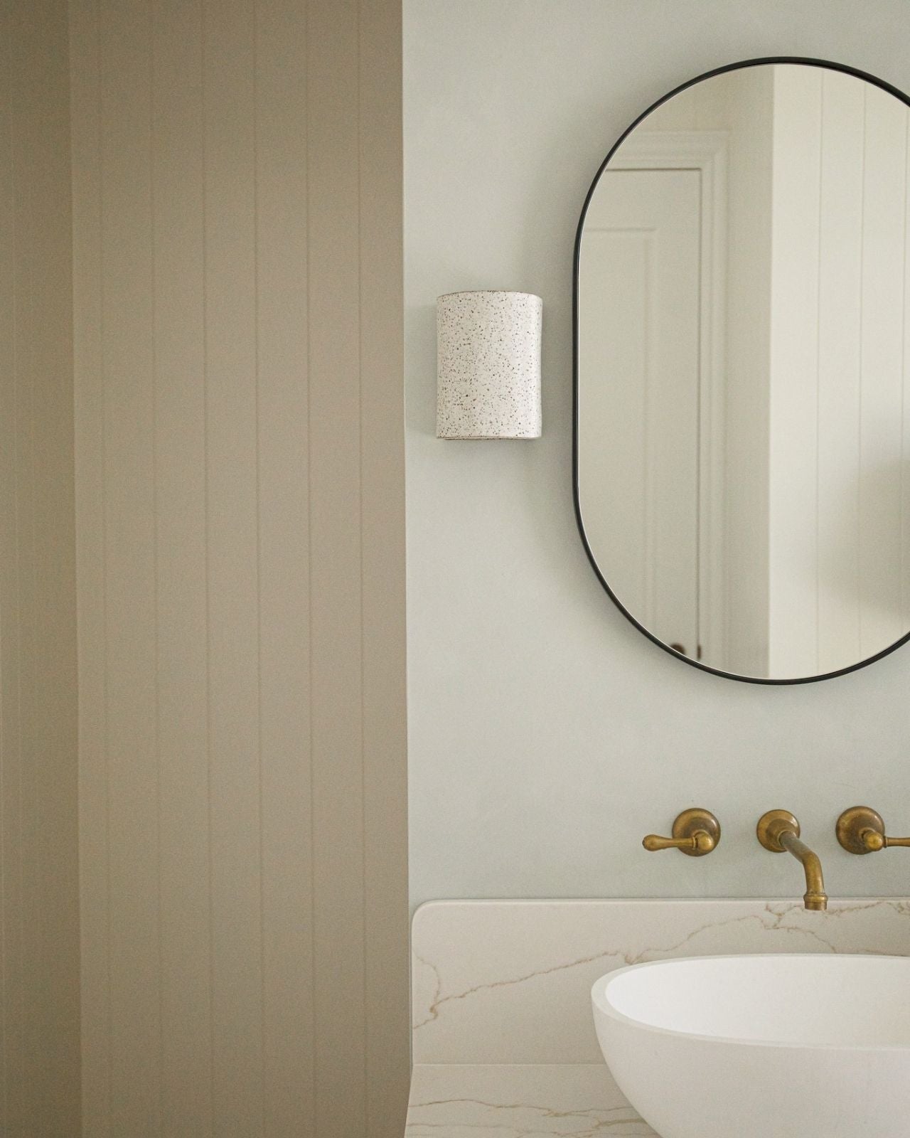 Handmade Ceramic Speckled Wall Light | Freckles Short in a powder room