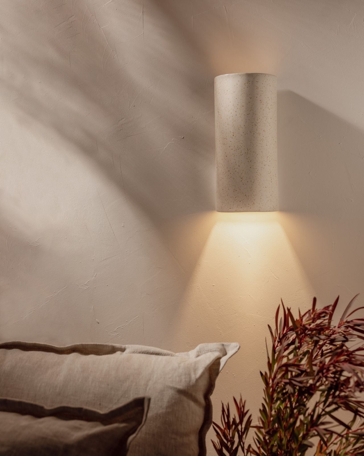 Handmade Ceramic Speckled Wall Light | Freckles in a living area light on