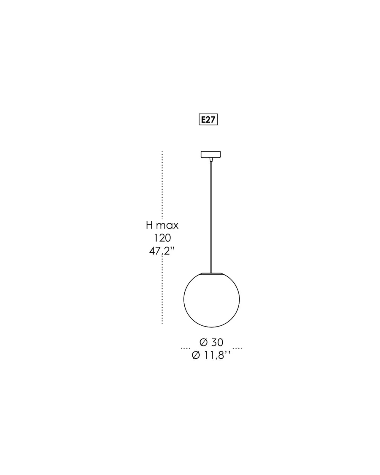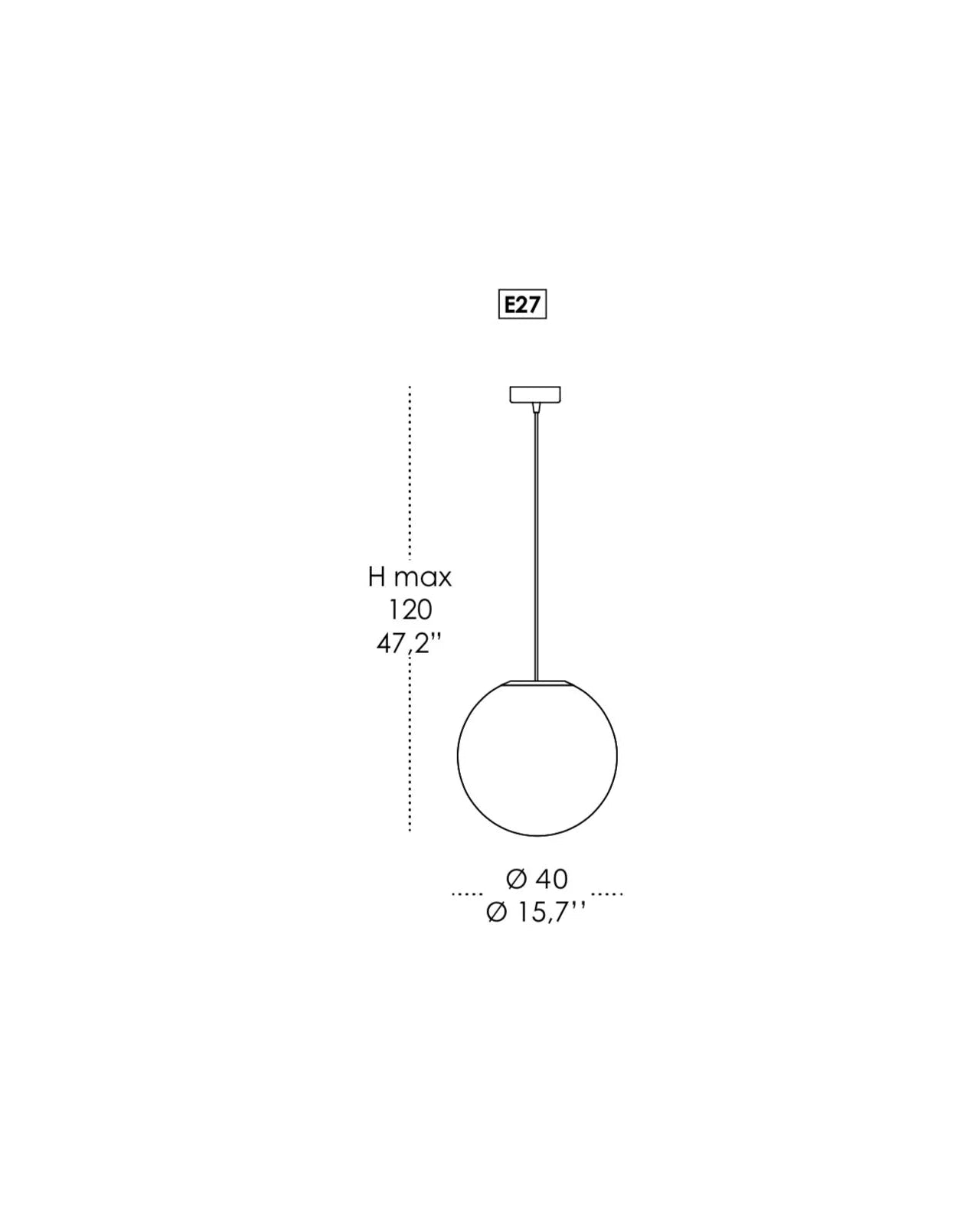 Technical drawing of a pendant light fixture with dimensions on a white background