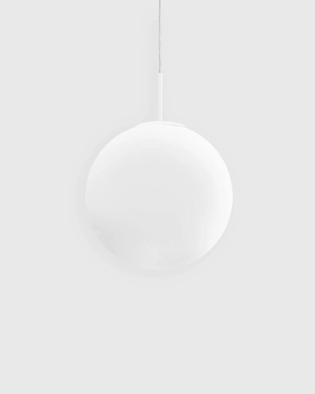 Make a simple statement. This pendant light boasts a satin finish triplex opal blown glass globe which gently illuminates any environment. Its contemporary, minimalist shape allows it to either blend in or stands out of any space.