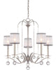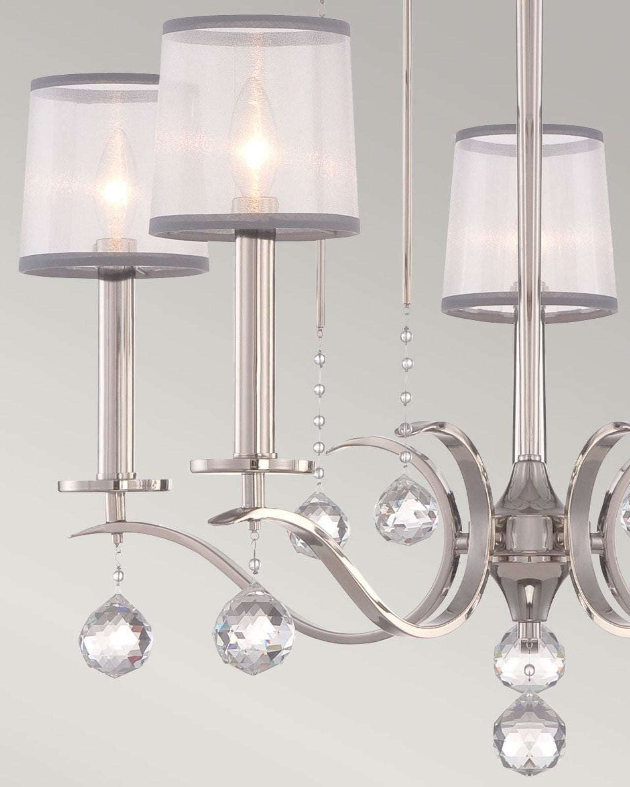 The Imperial Silver Crystal Chandelier is a statement piece that draws on a traditional shape with a stylised design. The Imperial Silver finish bounces the light and highlights the downward curving arms with hanging crystal accents in a beautiful way. A sophisticated yet dramatic appearance. This piece is available with five lights and is sure to add character above your kitchen island, dining table or as a feature in your foyer.
