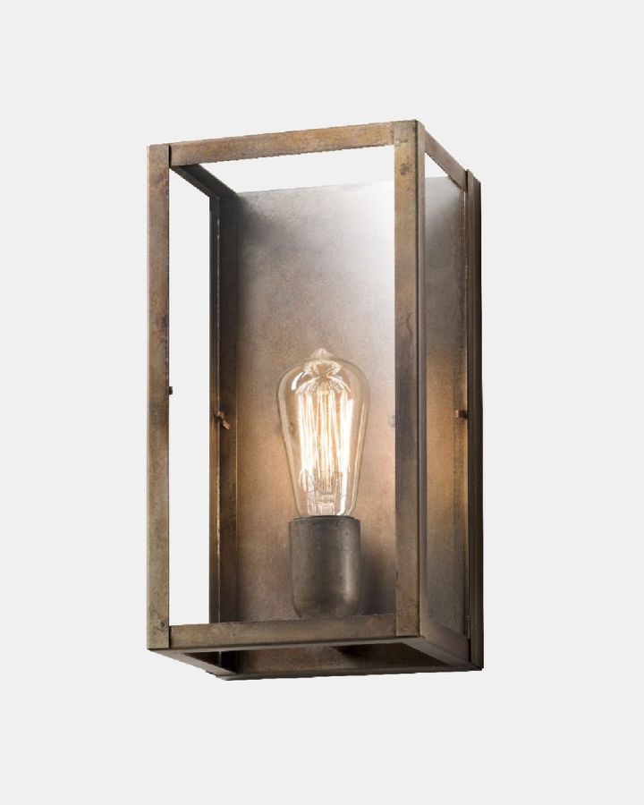 This Italian range of wall lanterns showcases a stunning combination of form and functionality. The aged iron frame contrasts beautifully with the clear Murano glass panels.