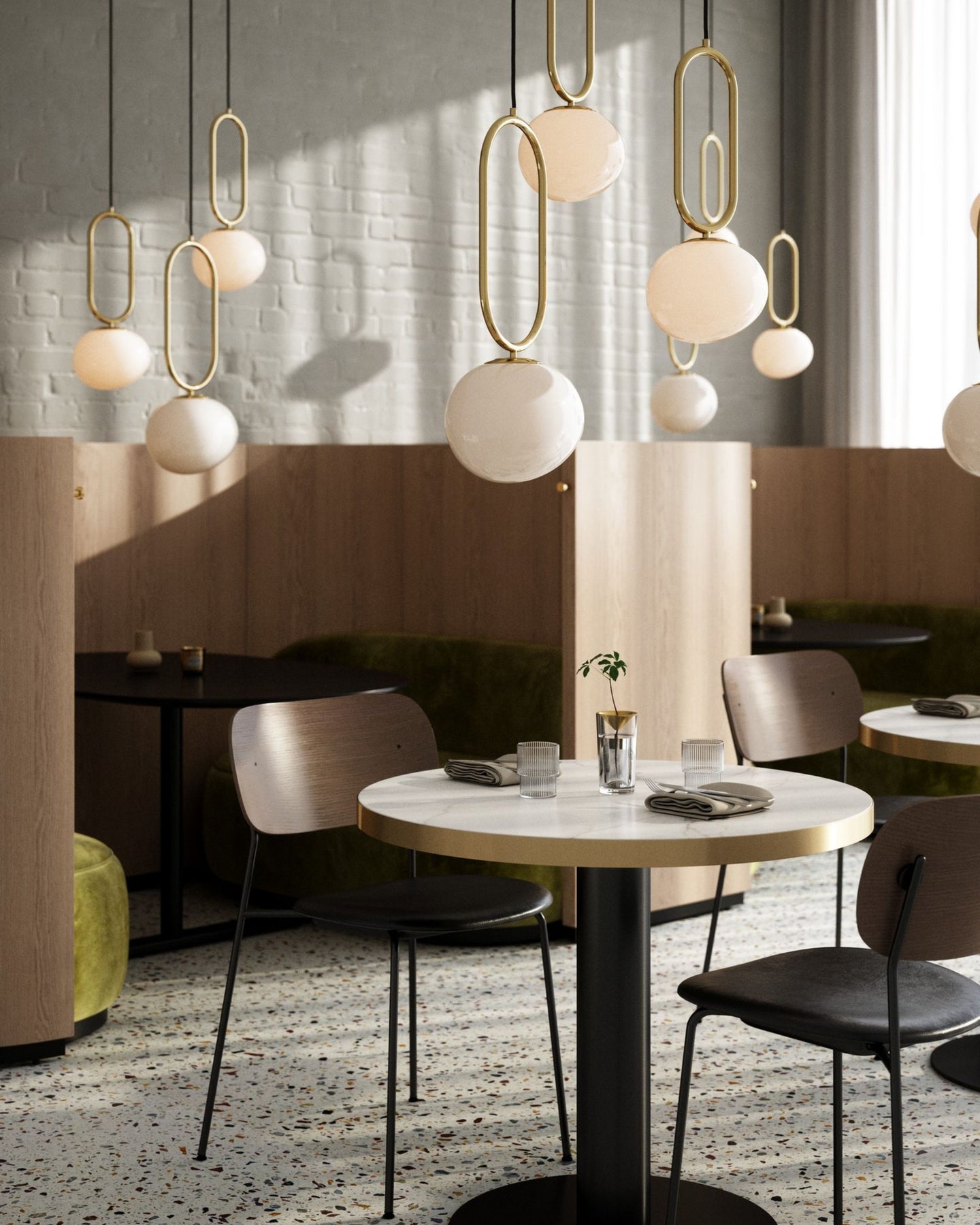 Frosted Tubular Brass Suspended Pendant 3 Light variant in a changing room