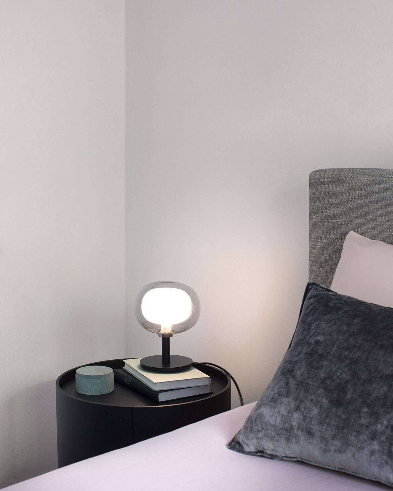 The Layered Glass Tall Table Lamp blends mid-century elegance with contemporary refinement, featuring a frosted diffuser encased in a Clear or Smoke glass shade with a Black Chrome or Brushed Brass detailing. This fitting can be used for functional lighting or for moody atmospheric light. The table lamps' simple silhouette is ideal for living rooms, bedrooms, or stylish workspaces.
