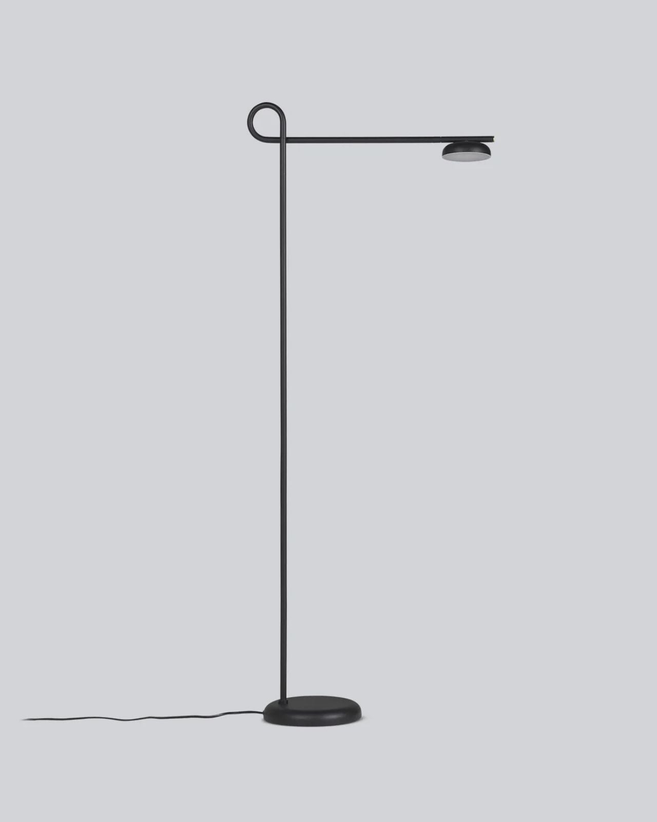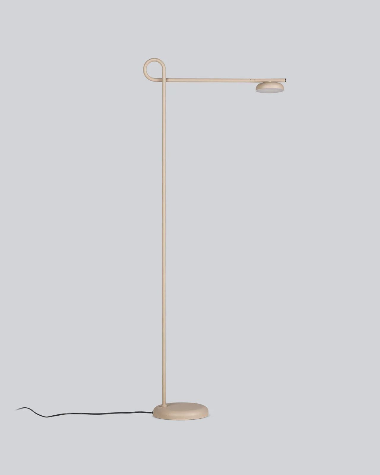 The Looped Floor Lamp combines sculptural style with practical elegance. Inspired by the flowing motion of skateboarding and snowboarding tricks, its design captures movement in a single, smooth curve. The slim steel frame arches gently from base to arm, forming a looped shape that is both modern and smooth. Available in a matte black or soft beige finish, this fitting's minimalist structure is accented by a brushed brass touch dimmer, discreetly positioned on top of the lamp head. The head itself can be rotated to direct the warm LED glow precisely where it's needed, while the base turns freely for additional versatility.