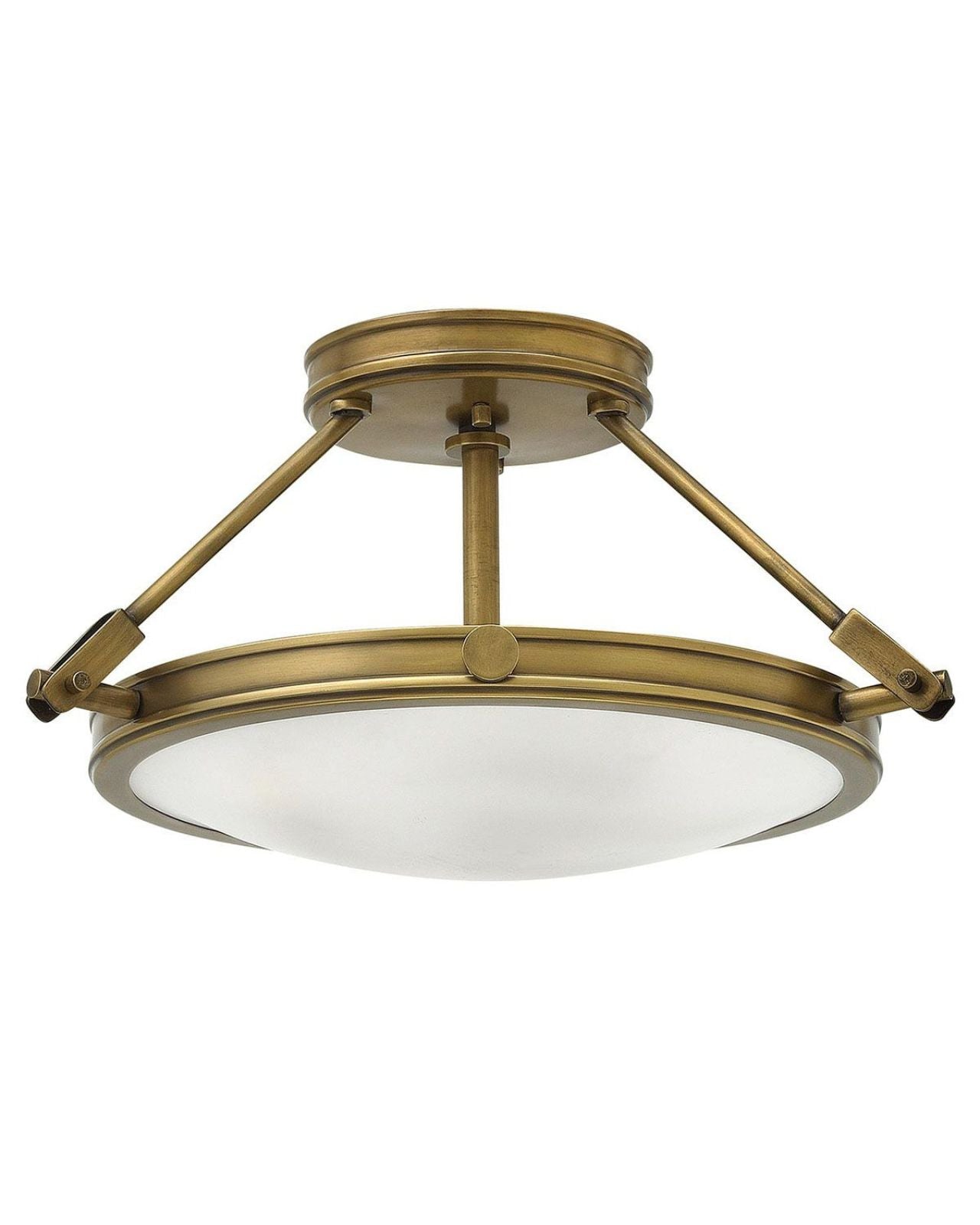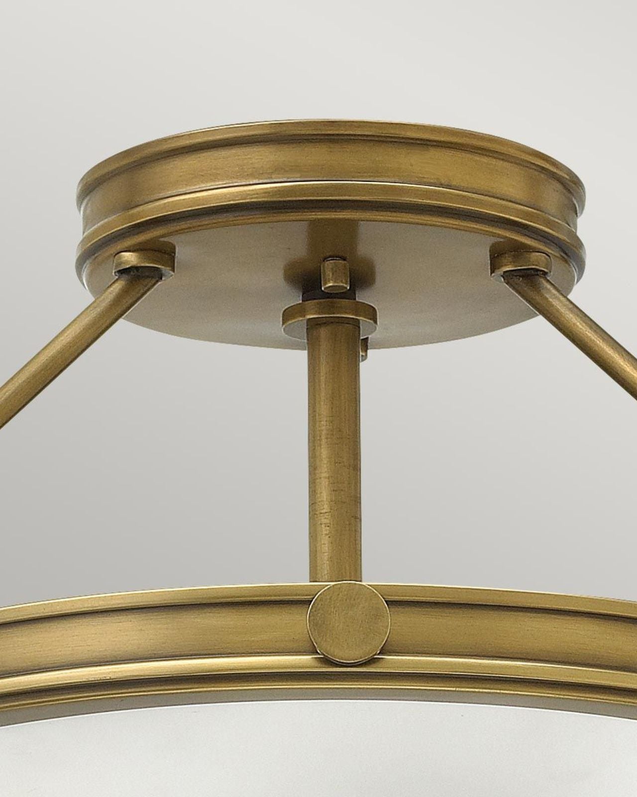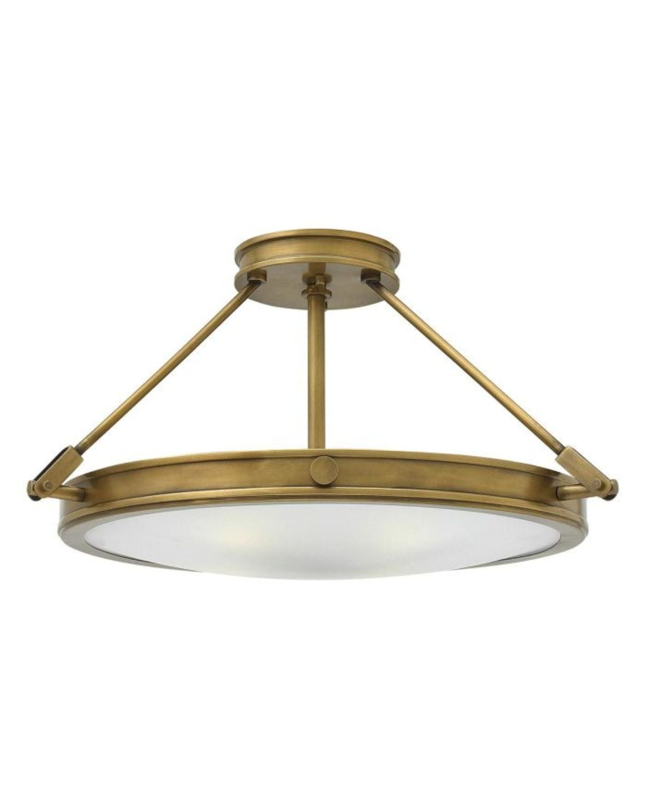 This Mid-Century Modern style ceiling light has a sleek, retro design with cast knobs, hinges and stems in a Brass finish. Sleek elegance for a look that is both modern and timeless. This semi flush mount light will look great in a Hamptons or Mid-Century Modern style room and is a romantic and elegant addition to any space.