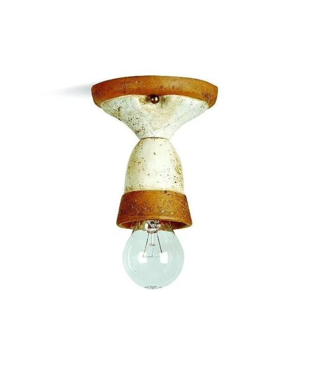 Designed to be simplistic in its form this Italian handmade ceiling light has been individually crafted using the Tuscan Tradition of hand-pressing clay forms. This minimalistic ceiling light made from Tuscan Maiolica with Brass Metal fittings is ideal for lining hallways and illuminating traditional styled living areas.