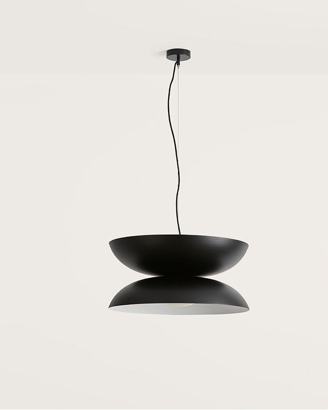 Featuring two suspended symmetrical connected discs and an innovative design, this minimalist pendant would be a unique focal point suspended in your modern living spaces. The Minimalist Double Disc Pendant includes a G9 LED, this pendant will provide a warm illumination to our interior spaces. A modern take on the nostalgic childhood memory of a "yo-yo", this pendant uses delightfully fun and playful in design.