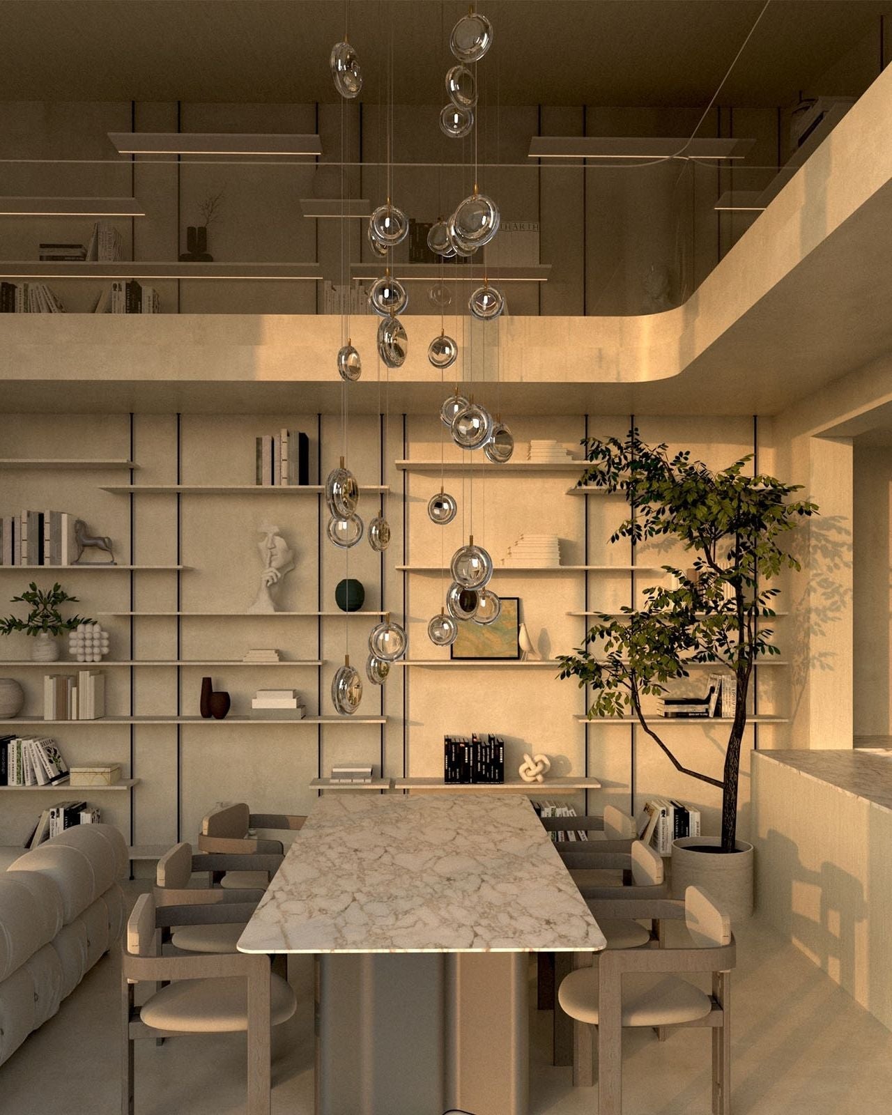 Frosted Tubular Brass Suspended Pendant 3 Light variant in a changing room