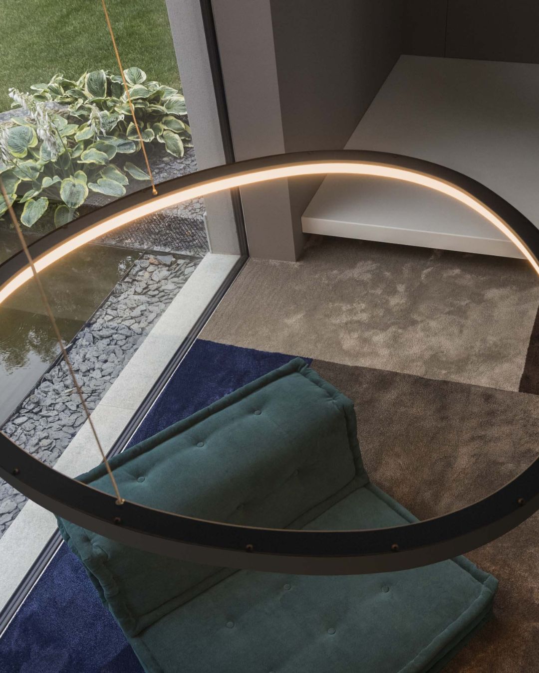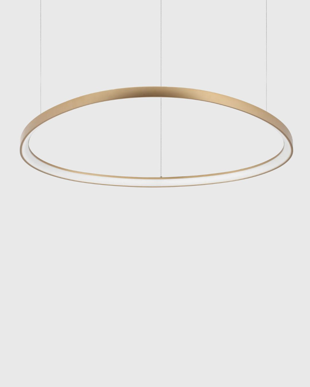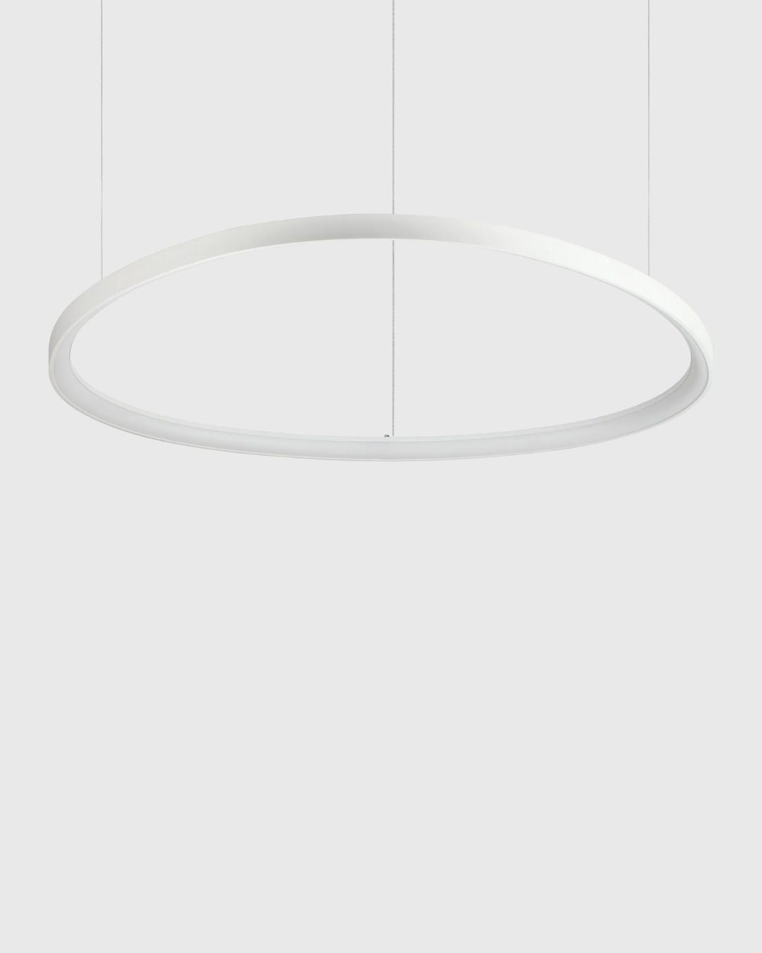 Modern and elegant, this refined pendant features a sleek powder coated or plated metal ring. With the illusion that it's floating, this fixture is a feature piece for any contemporary living room, dining room or commercial space. Available in white, black or a brushed brass finish, the opal polycarbonate diffuser features an integrated LED that spreads a warm, glare-free light.