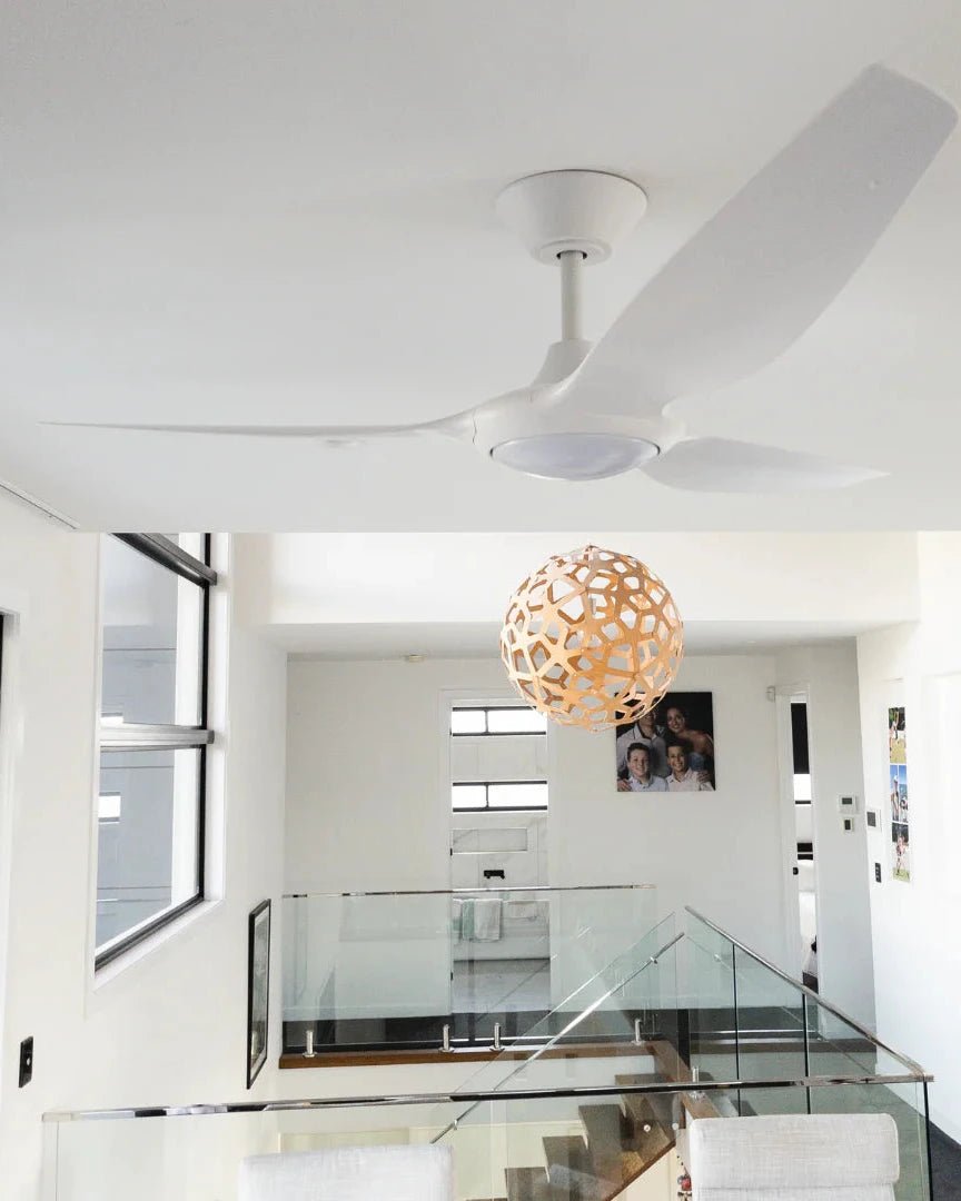 The aerodynamic polymer blades are built for all-weather durability, featuring UV protection and sound-dampening technology for quiet, long-lasting performance. Designed for a range of climates from humid to coastal this fan offers a powerful yet peaceful breeze, ideal for medium-sized rooms such as bedrooms, living areas, and covered outdoor spaces.