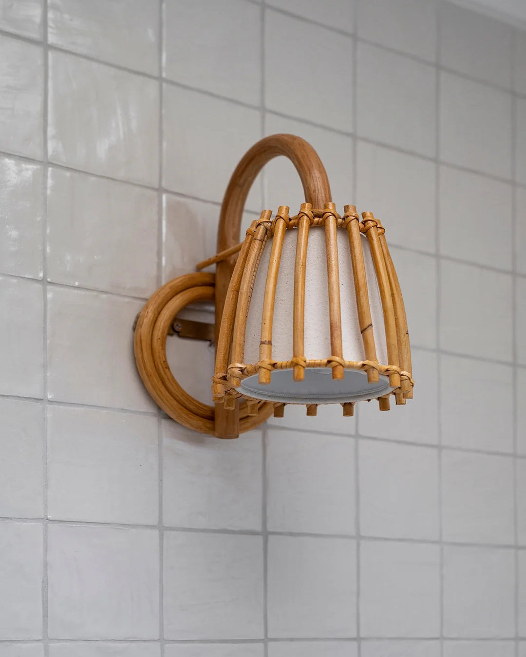 Designed in Australia and handmade in Indonesia this fitting is made from natural bamboo and rattan. This design's natural materials and curved features make this wall scone well-suited for organic and coastal-styled interiors. Small in size this wall light looks beautiful framing a bedrest or lining a hallway. Slight variations in each piece may occur due to each light being uniquely created.