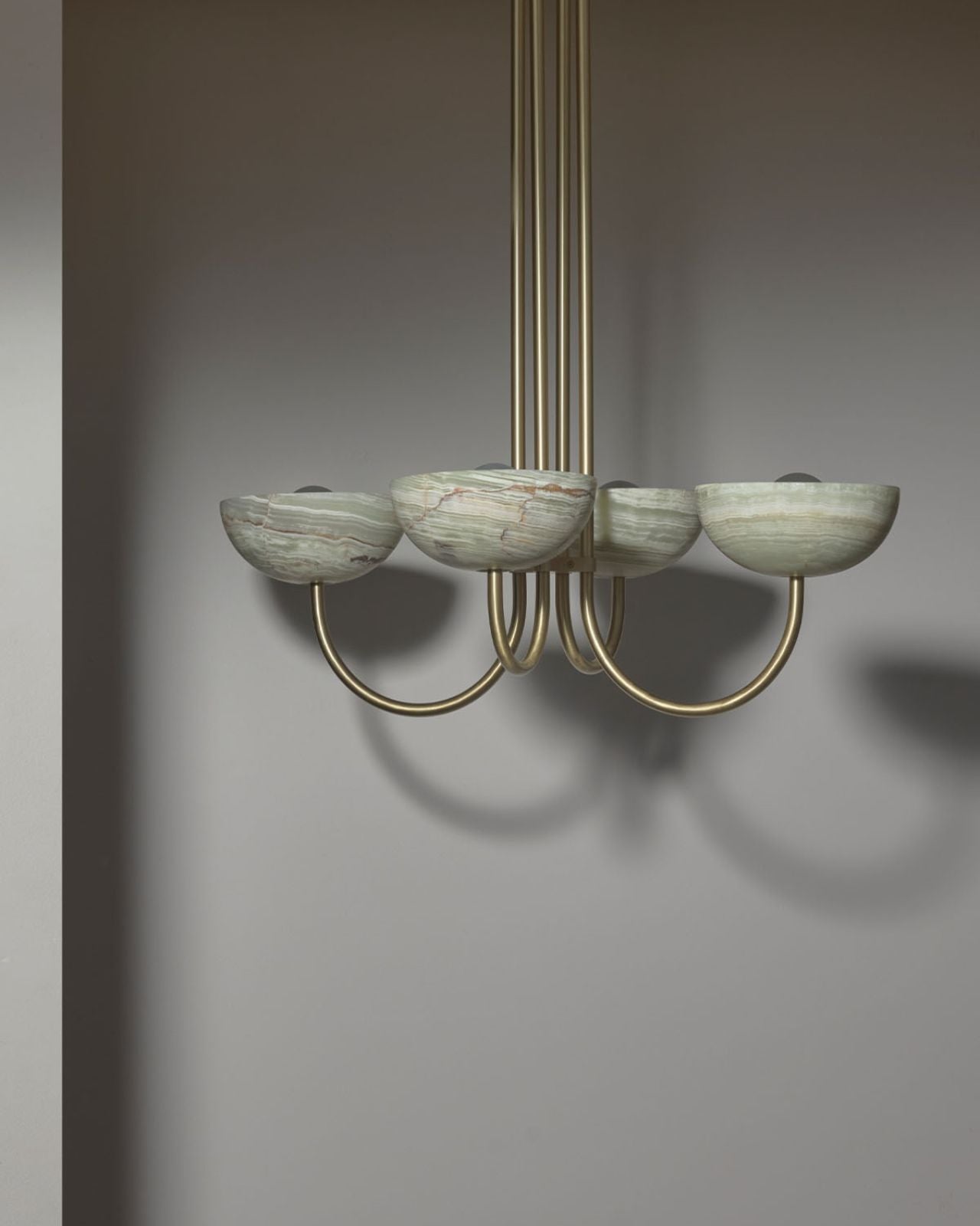 Onyx Stone Narrow Quad Dome Chandelier | Aurelia | Jade Onyx | Brass