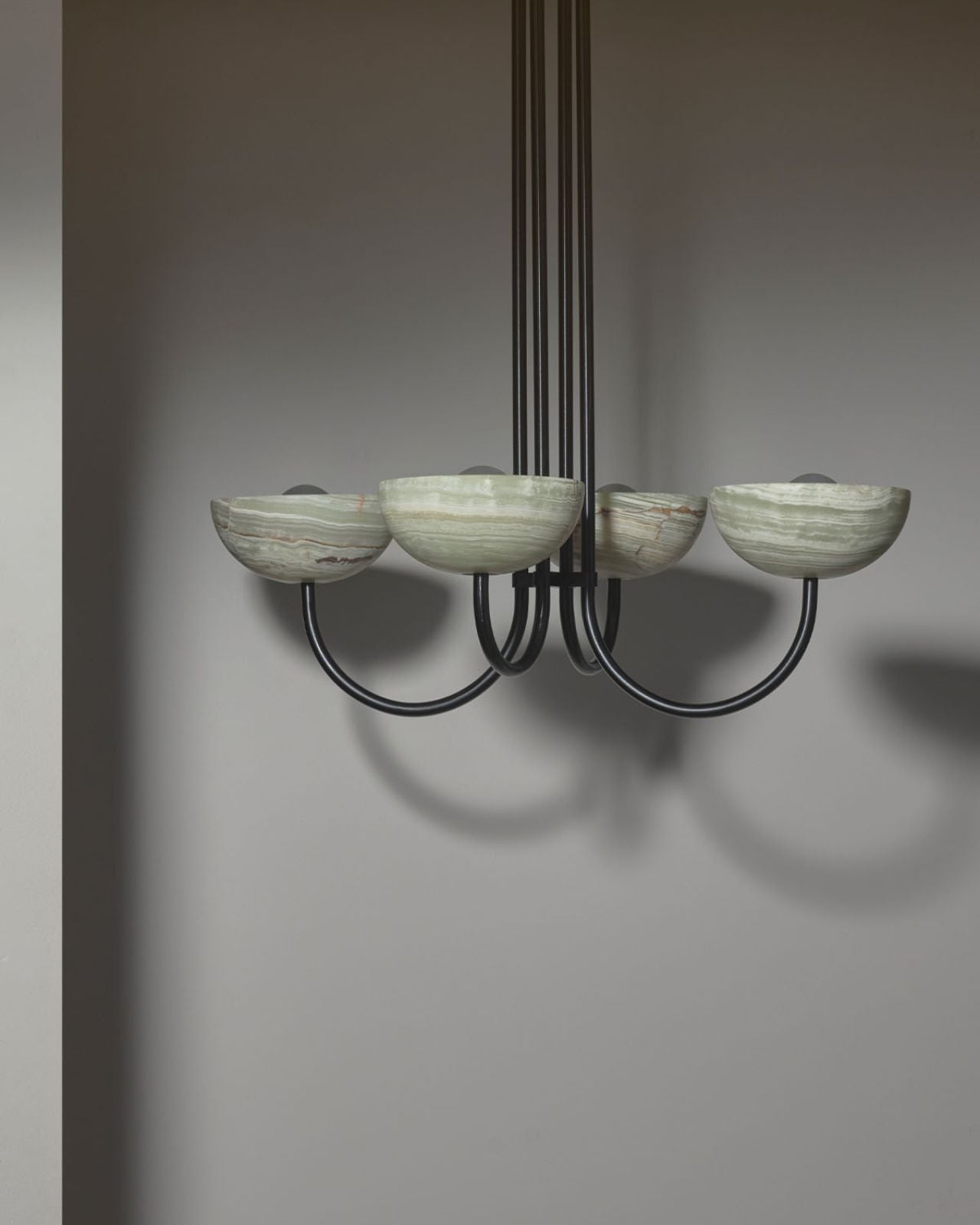 Onyx Stone Narrow Quad Dome Chandelier | Aurelia | Jade Onyx | Brushed Black