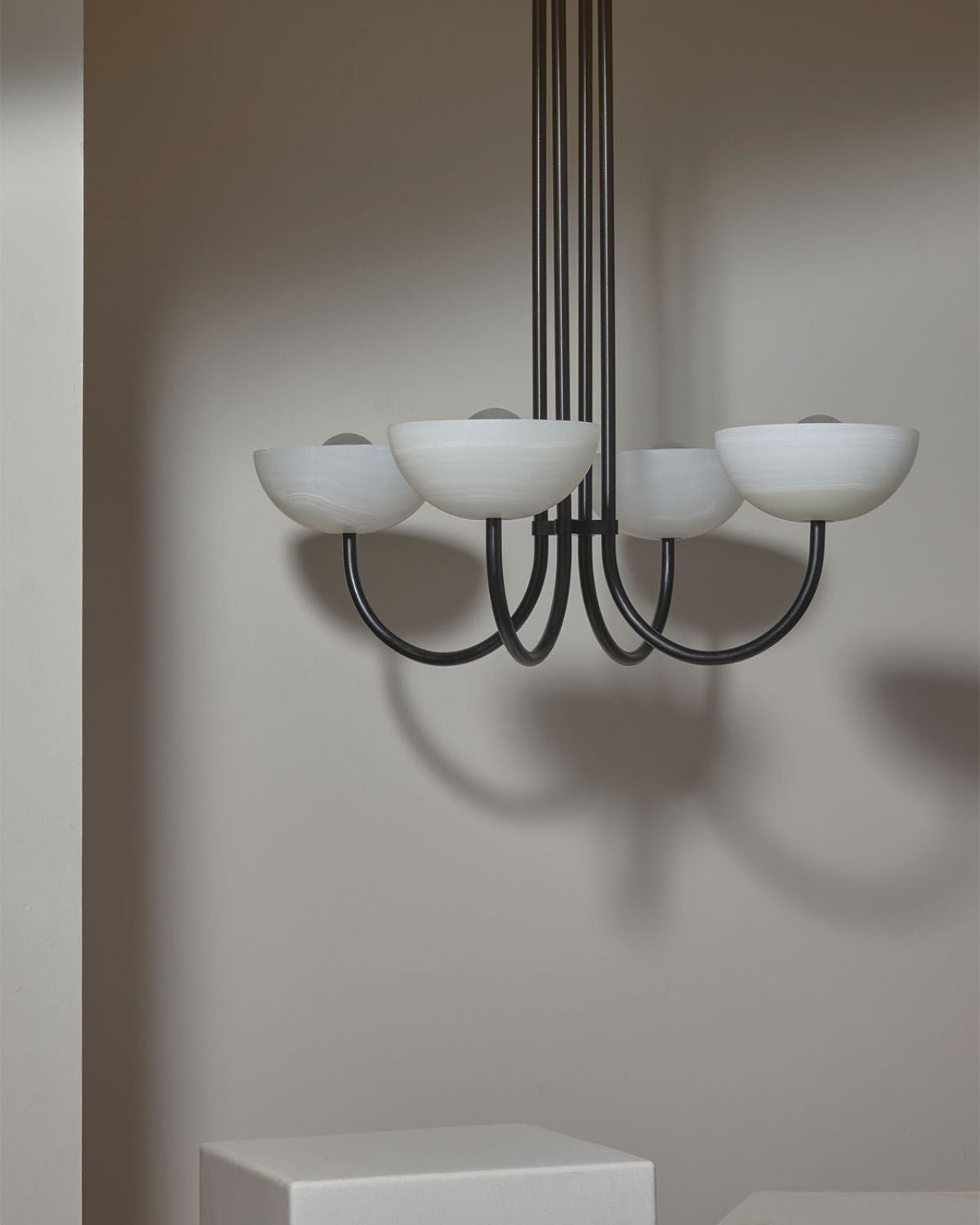 Onyx Stone Quad Dome Chandelier | Aurelia | White Onyx | Brushed Black