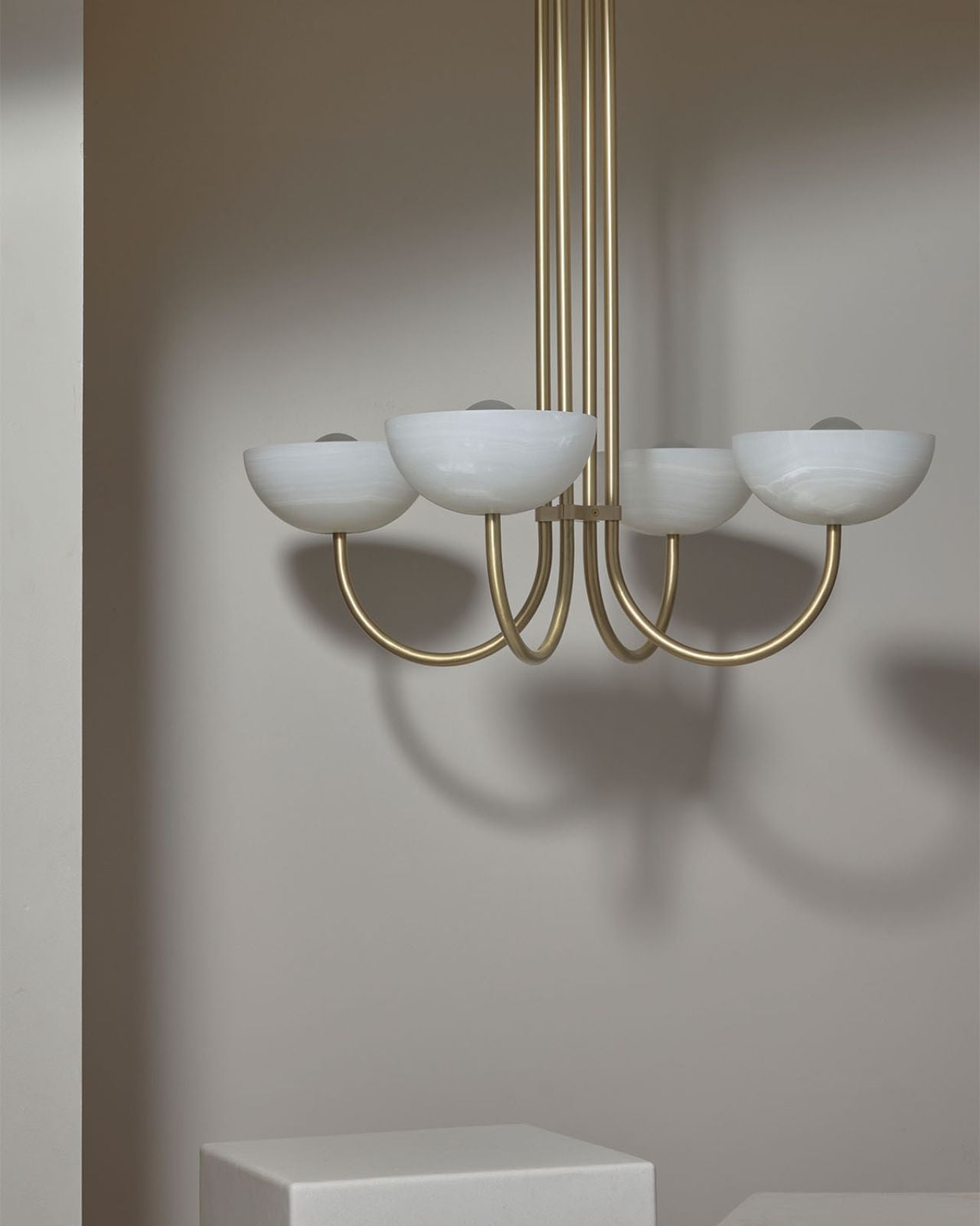 Onyx Stone Quad Dome Chandelier | Aurelia | White Onyx | Brass