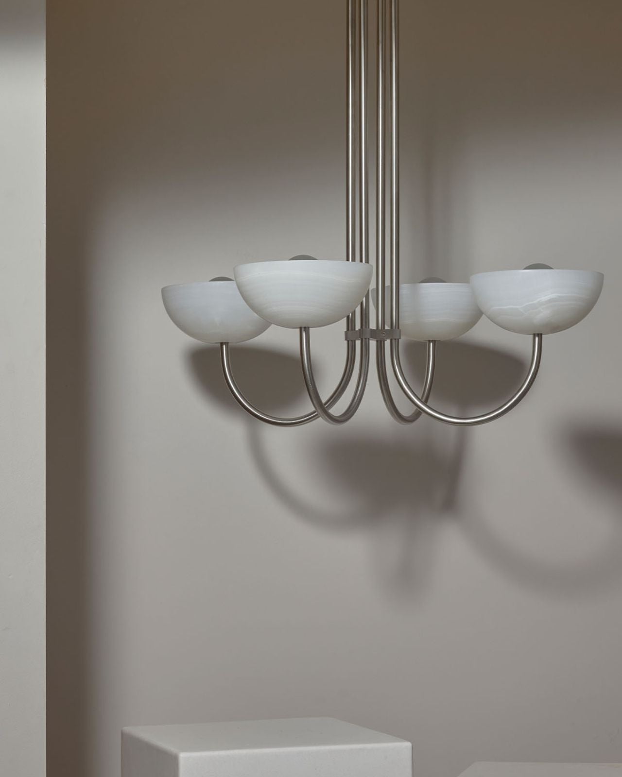 Onyx Stone Quad Dome Chandelier | Aurelia | White Onyx | Brushed Nickel