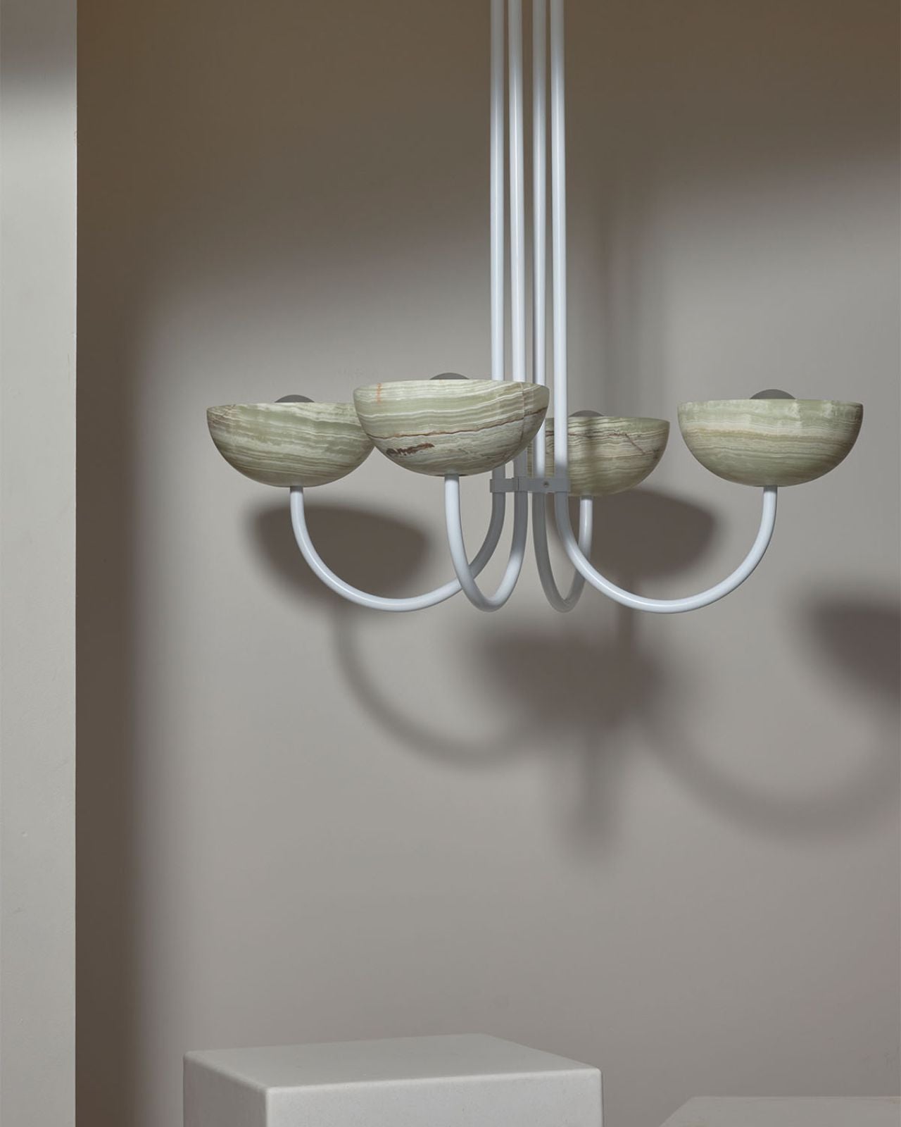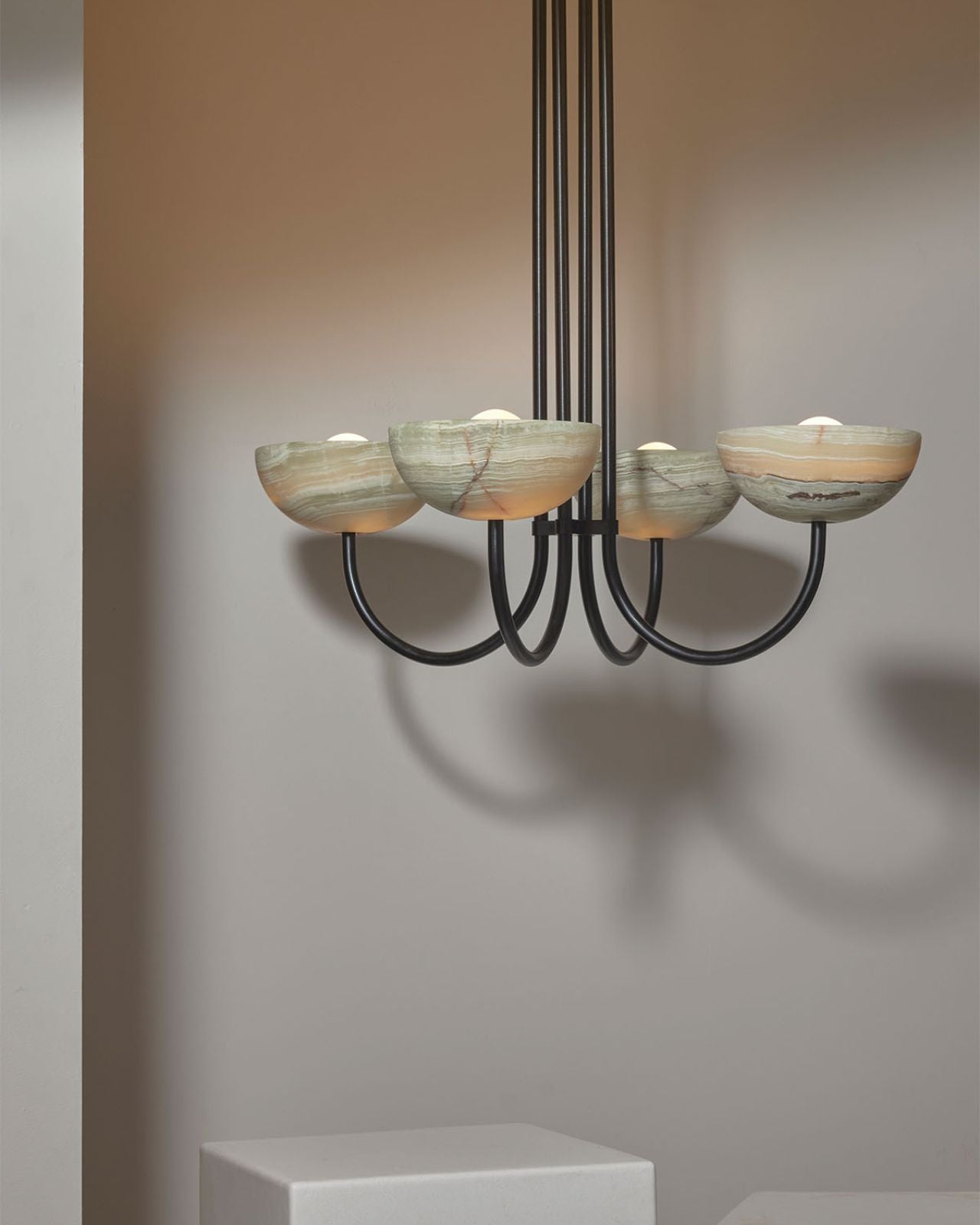 Onyx Stone Quad Dome Chandelier | Aurelia | Jade Onyx | White Satin