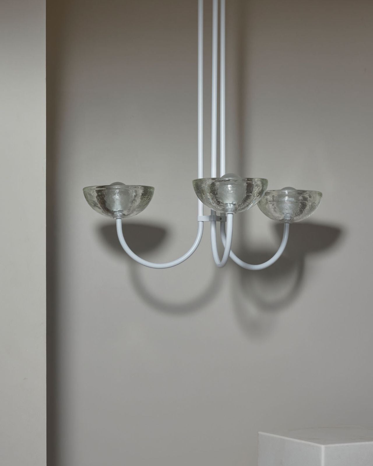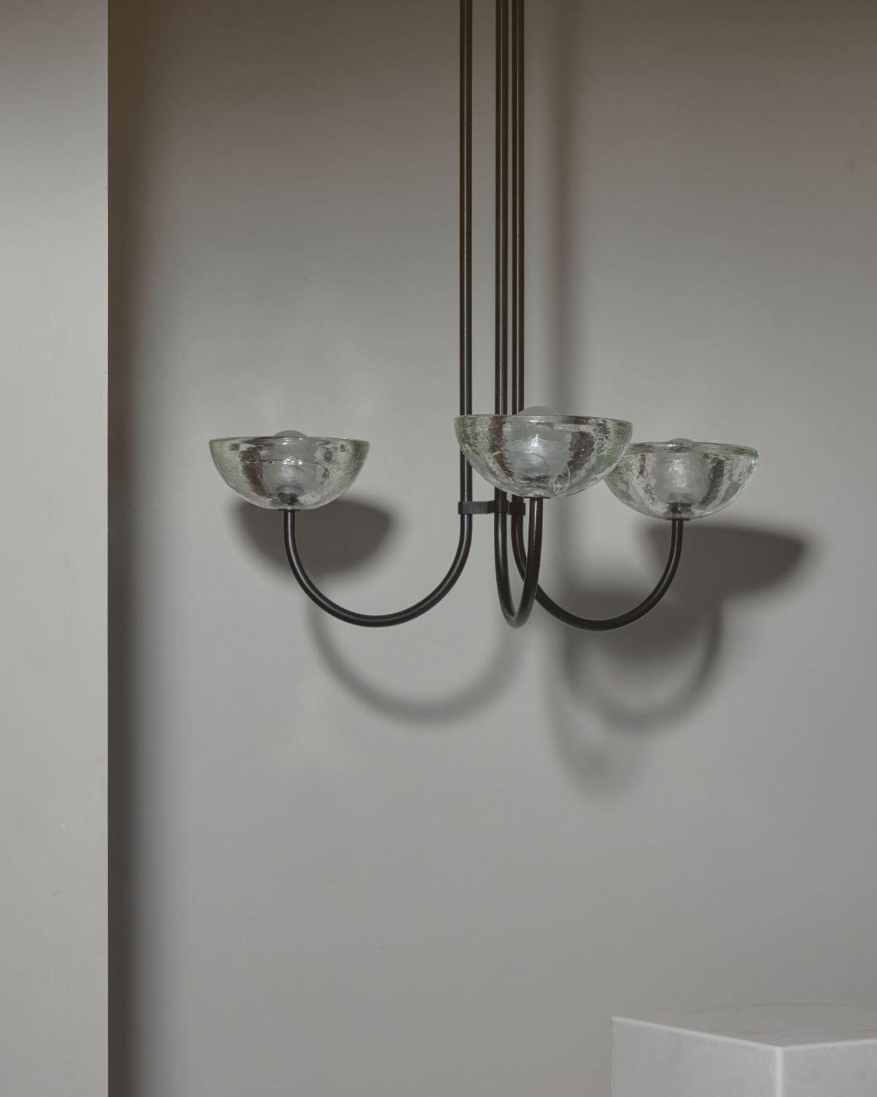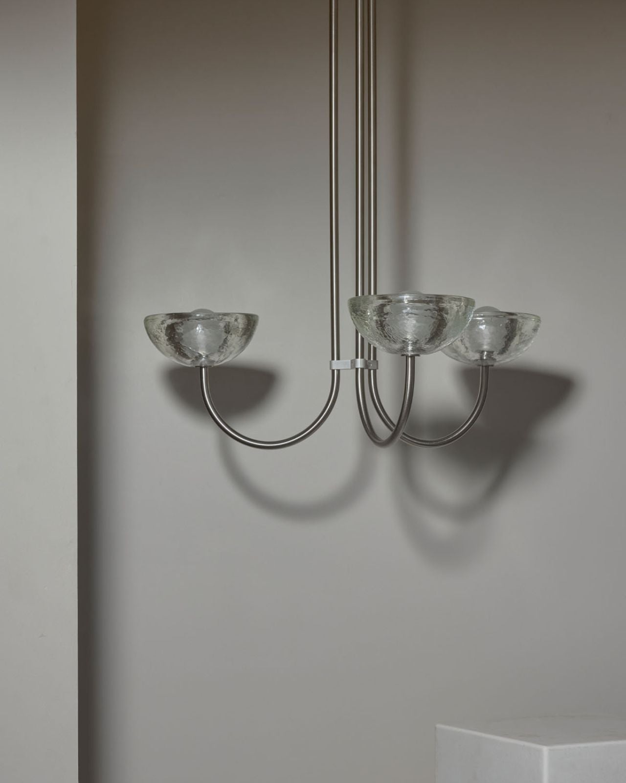 This triple dome pendant is a contemporary version of a classic chandelier with shades turned upside down for stunning soft illumination. This fixture is made from glass, jade or white onyx and is paired with solid metal rods available in four finishes, brass, brushed black, brushed nickel or satin white and two different sizes. Ideal in living rooms, dining rooms or restaurants, this pendant will bring a celestial and refined touch to the surroundings.