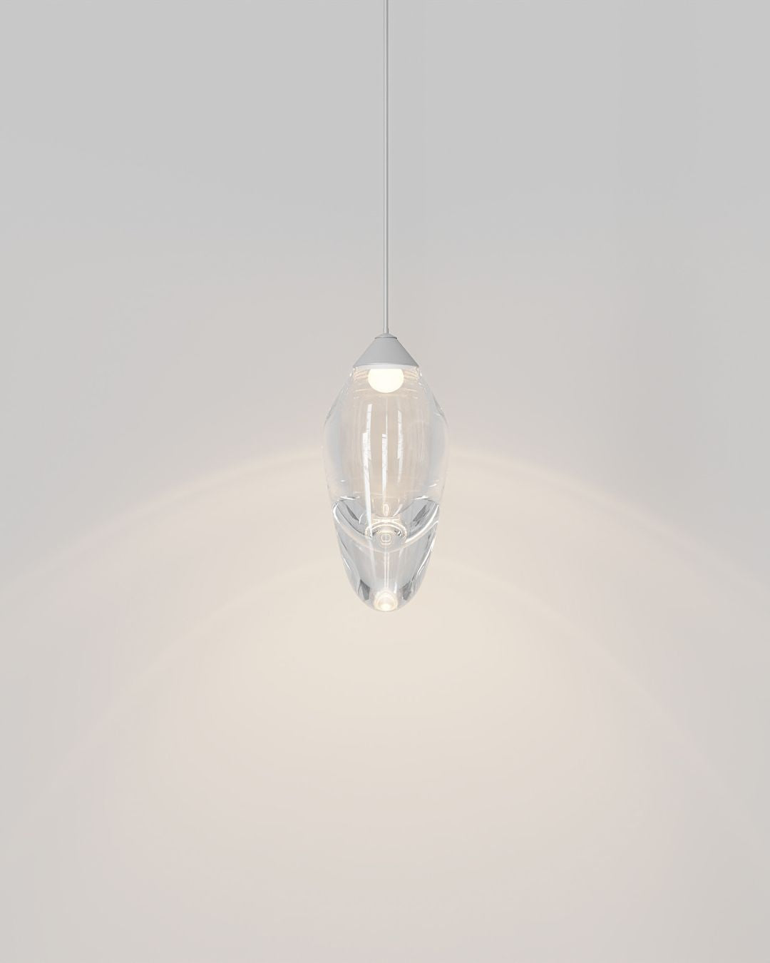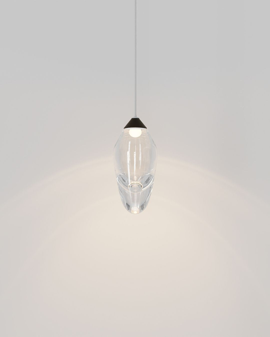 Handmade using molten hot glass shaped and blown at one thousand degrees Celsius, this pendant features a modern and organic teardrop design crafted from high-quality Swedish clear glass. Designed and handmade in Currumbin, Australia, by Oliver Höglund and Ryan Roberts, its free-form nature ensures that each piece is unique. A refined addition to any space, this pendant brings a sculptural presence with its delicate craftsmanship.