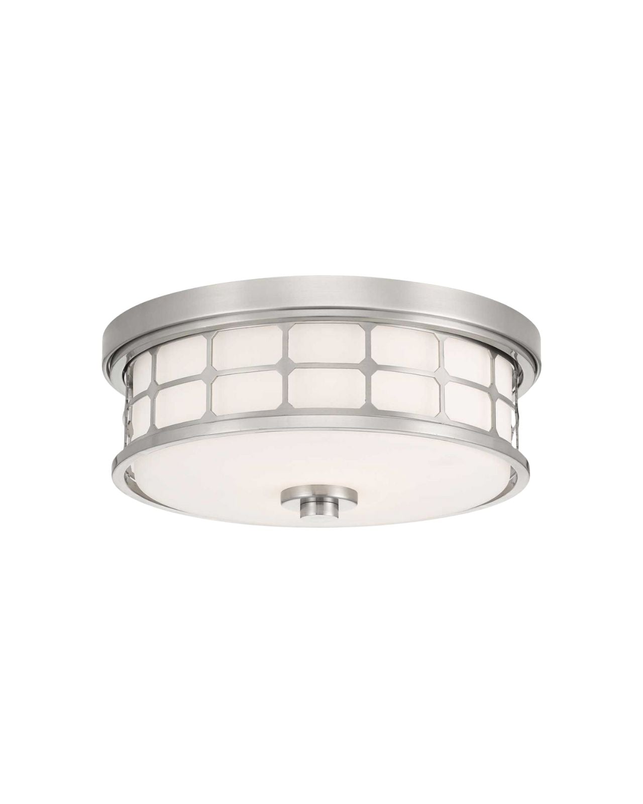 A timeless addition to any space, the Ornamental Flush Ceiling Light features intricate detailing in a steel frame. Available in polished nickel or brass, the frame offers a choice between sleek modernity or classic warmth. The light's frosted glass shade is designed to diffuse light evenly, creating a soft and inviting ambiance. Perfect for bathrooms, dining spaces, or bedrooms, this fixture blends vintage sophistication with functional design.