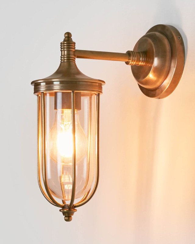 Outdoor Caged Lantern Wall Light Brass light on side view