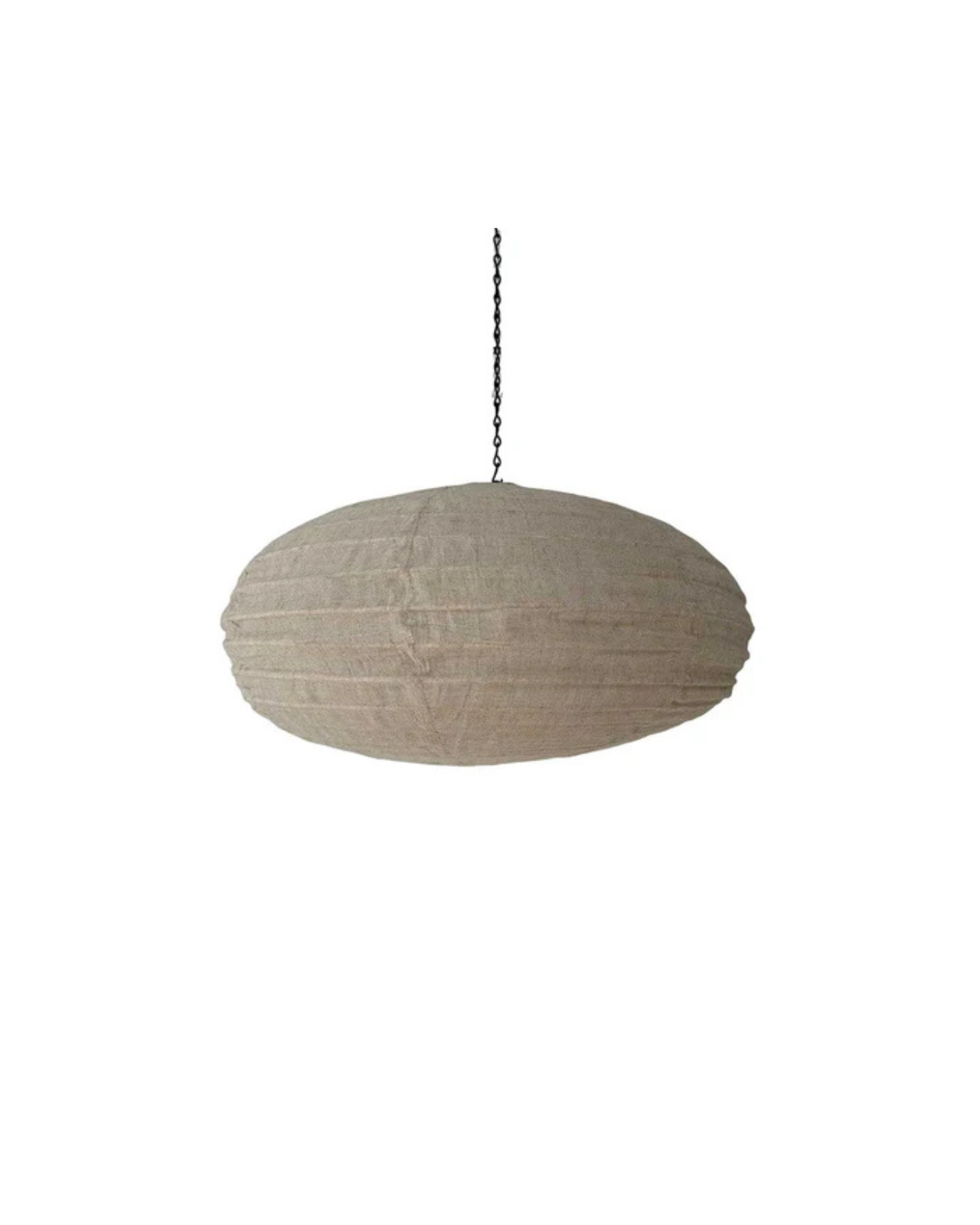 The Oval Cotton Pendant Shade is a minimalist, Japandi stye shade inspired by the warm glow of paper lanterns. Crafted with a fine rattan frame wrapped in cotton fabric, this lightweight shade is ideal for ceilings that can’t support heavy fixtures. The semi-translucent nature of cotton emits a warm glow when illuminated, making it a striking focal point whether hung individually or in clusters. Available in three sizes, it comes flat-packed for easy assembly and installation.