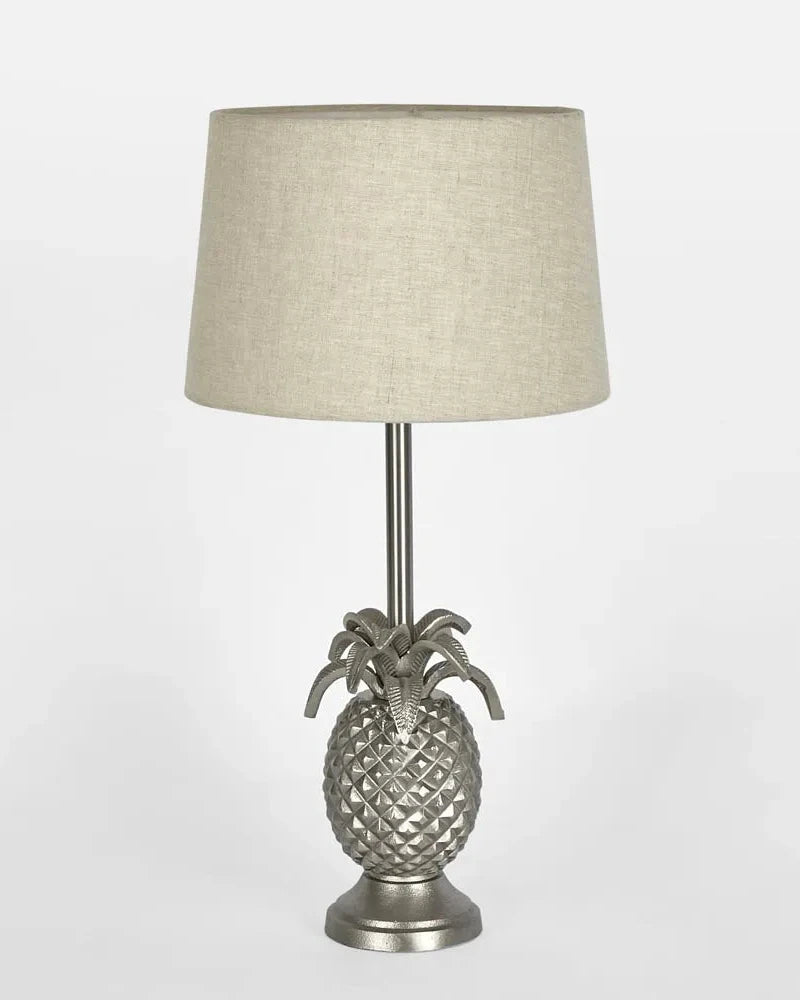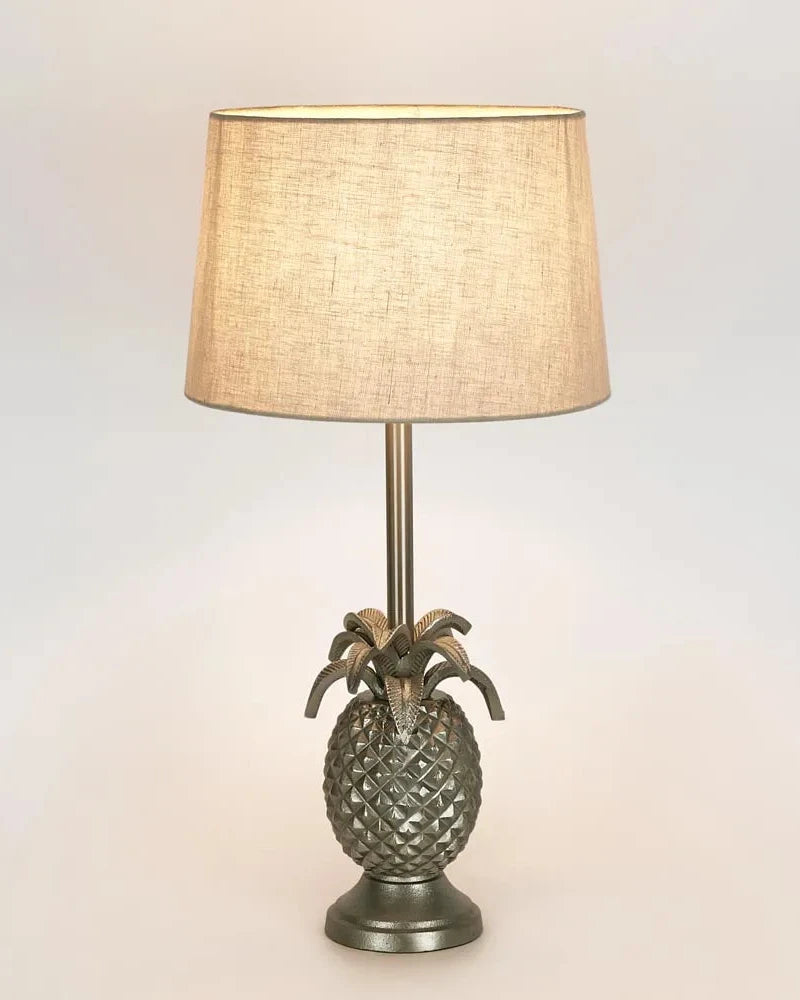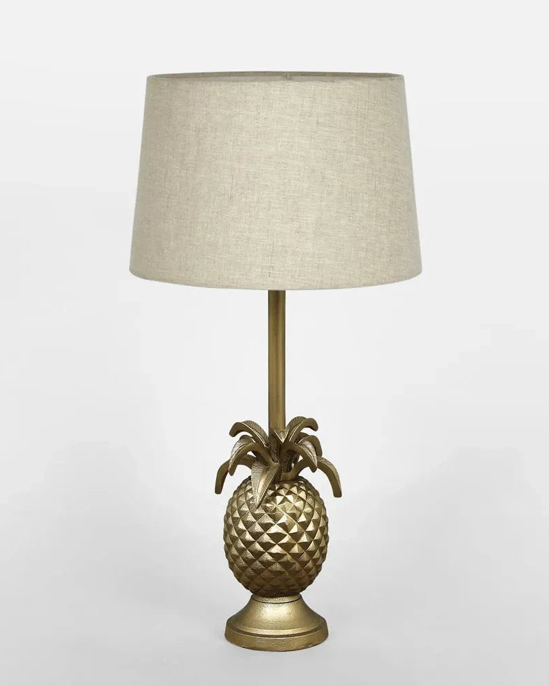 The pineapple table lamp has a solid brass foundation for rust-free durability also pertaining good weight for stability. The lamp can be purchased either shade-free or simply choose one of the 3 shade combinations we have picked also the lamp has a standard bayonet base that will easily take your globe of choice including LED.