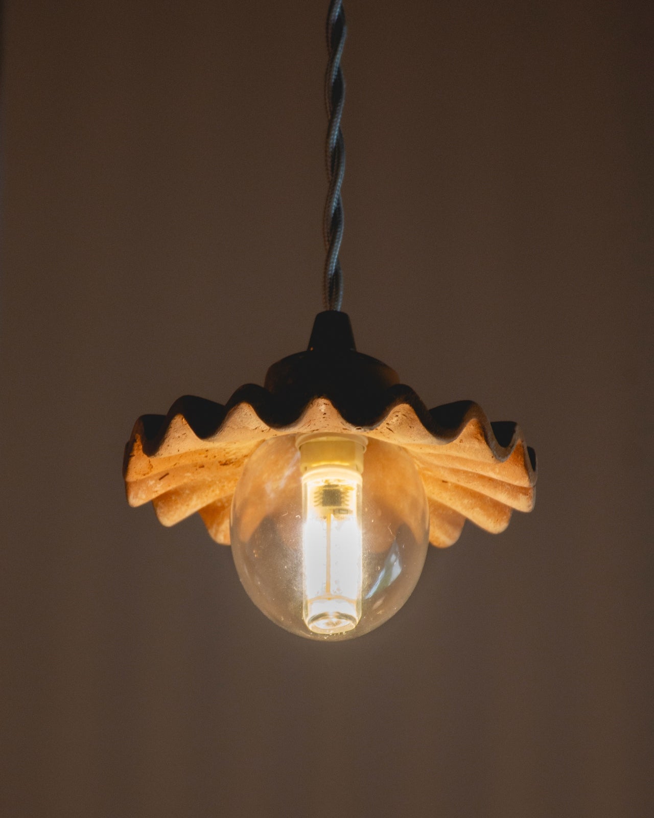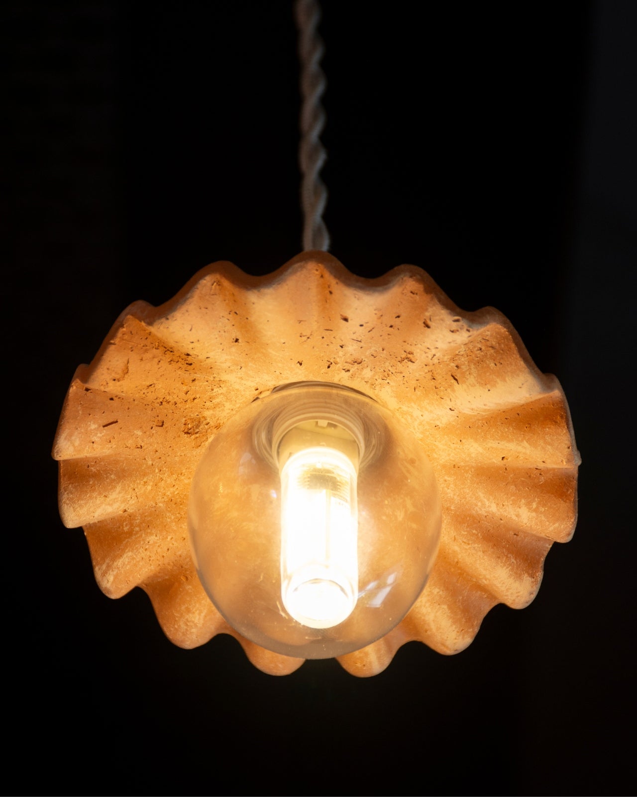 Handmade in Italy, this petite ceramic pendant showcases a distinctive pleated form and gently curved edges. Its refined design allows the craftsmanship and texture of the ceramic to take focus, creating a soft statement within any interior. Ideal for Mediterranean or organic-inspired spaces, this pendant light brings warmth and individuality to kitchens, dining areas, or relaxed living rooms. Available in a range of hand-applied finishes.