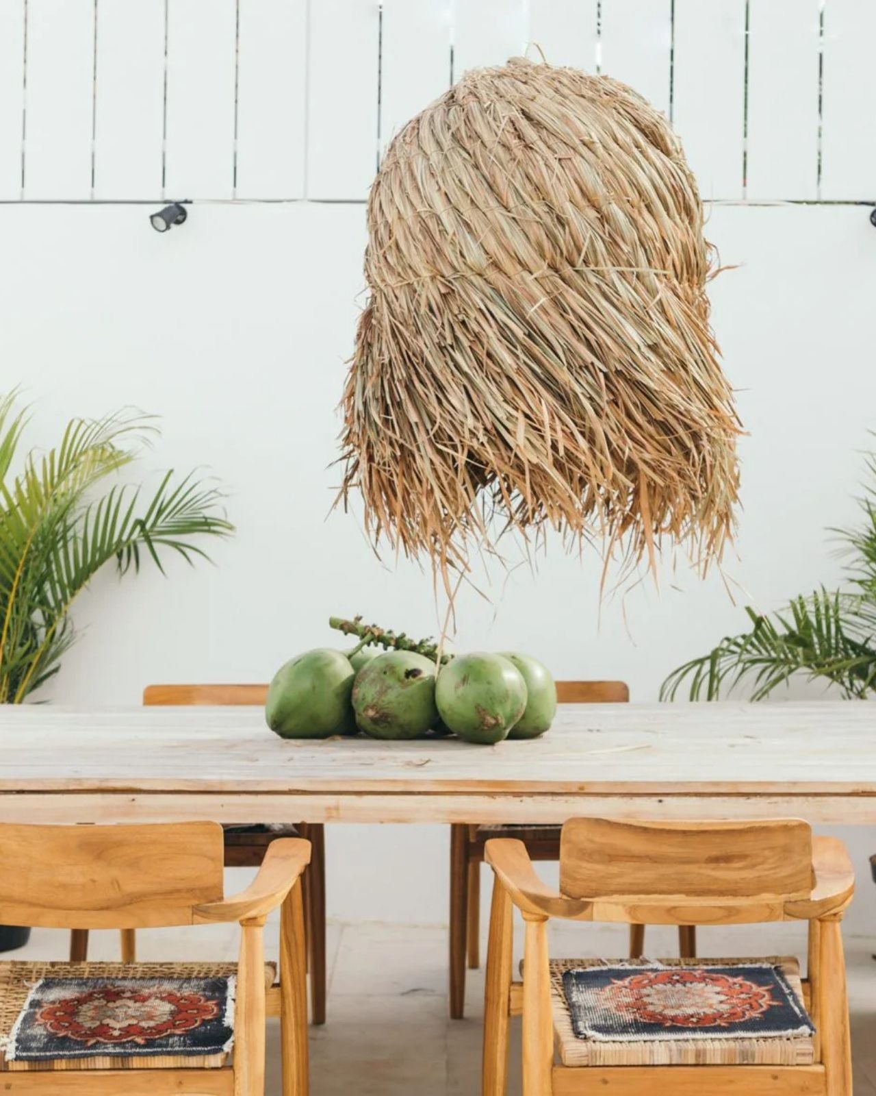 Natural Bleach Rattan Dome Pendant Over a Dining Table