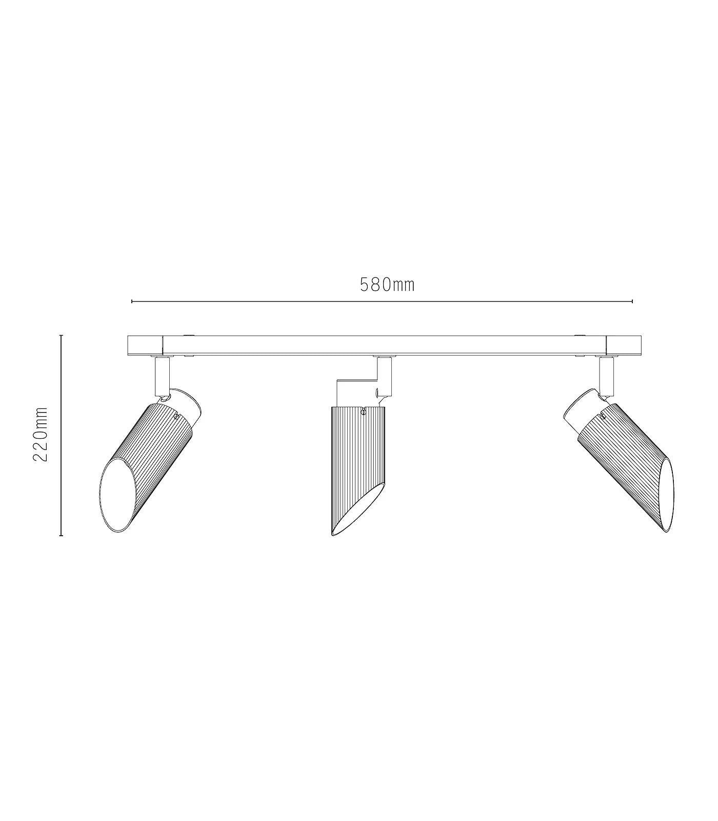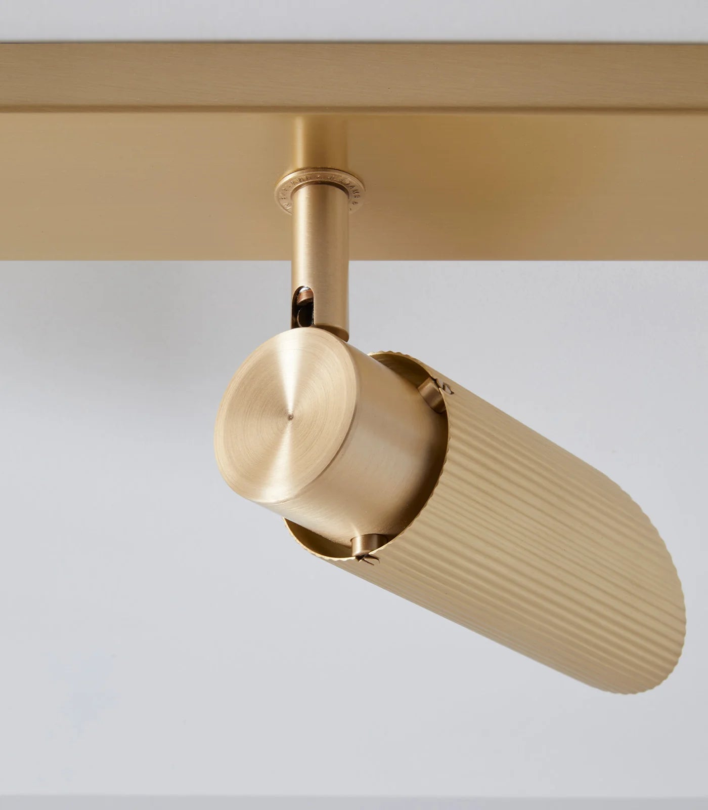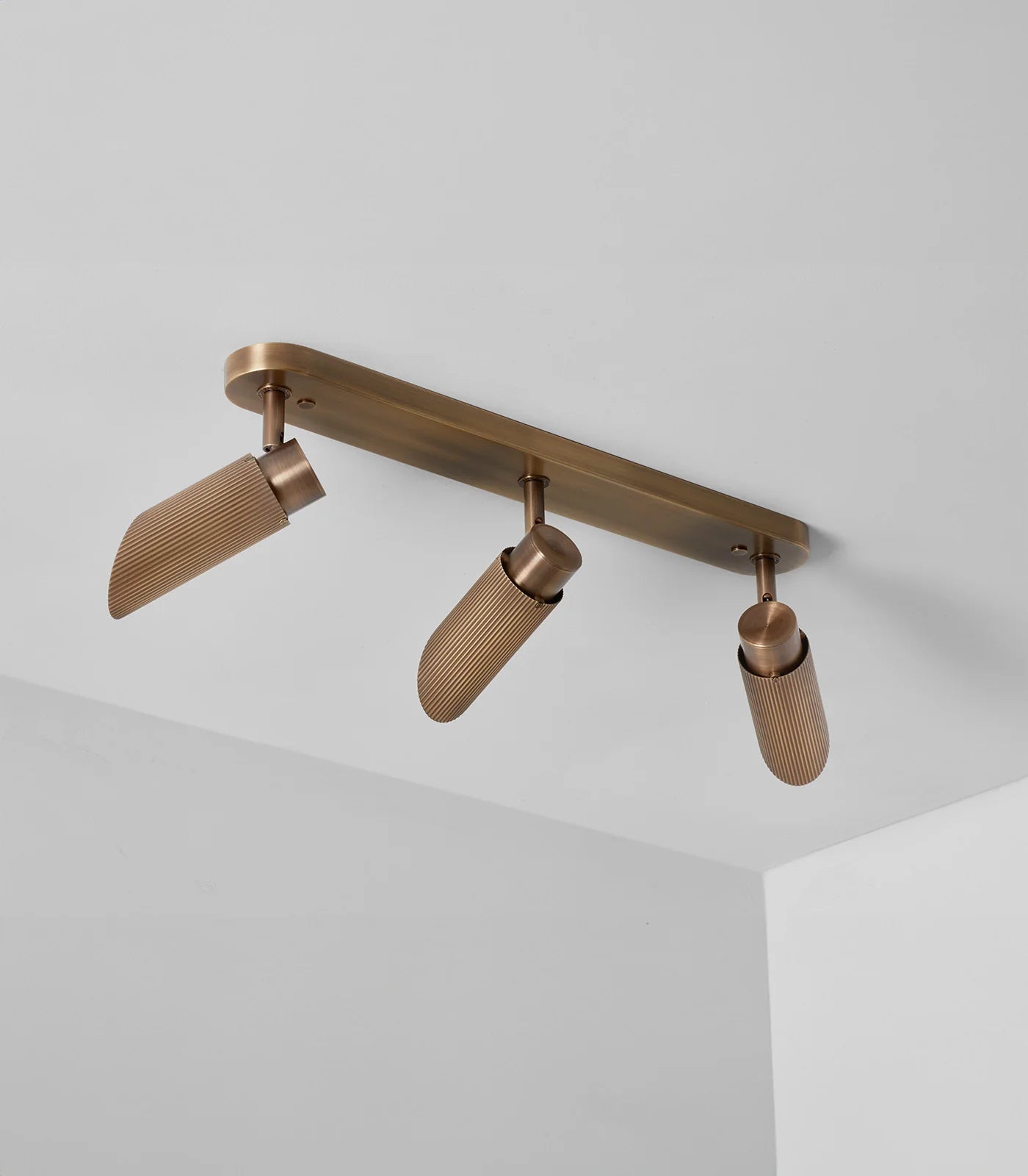 Crafted with a subtly reeded metal finish, this piece brings texture and modern character to ceilings. Each head is engineered with recessed LEDs and angled detailing to soften glare while maintaining strong, efficient illumination. A thoughtful blend of form and function, this triple ceiling light suits contemporary interiors seeking precision lighting with a streamlined, understated presence.