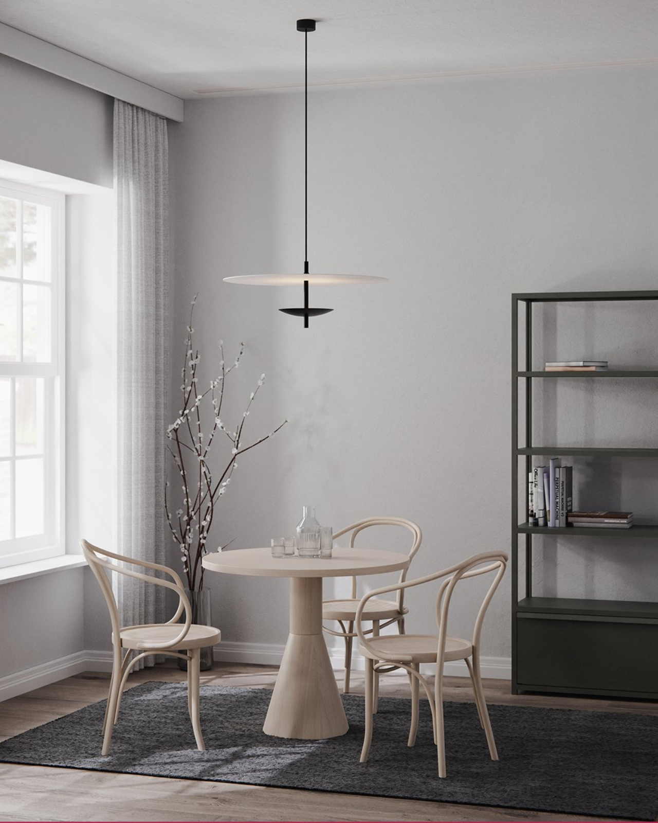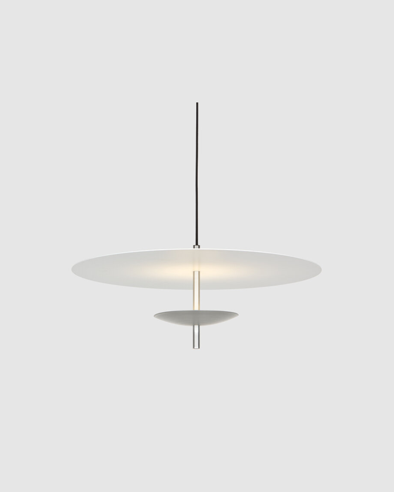 This captivating fixture features two parallel discs that harmoniously blend form and function. The top disc is matte white, designed to diffuse light gently, while below, the second disc comes in ten luxurious finishes. Inside the lower disc is an integrated LED that reflects light off of the top disc. Perfect for contemporary interiors as a statement piece, this pendant light offers both versatility and style. Also available brushed aluminium, which features both the top and bottom discs being in brushed aluminium.