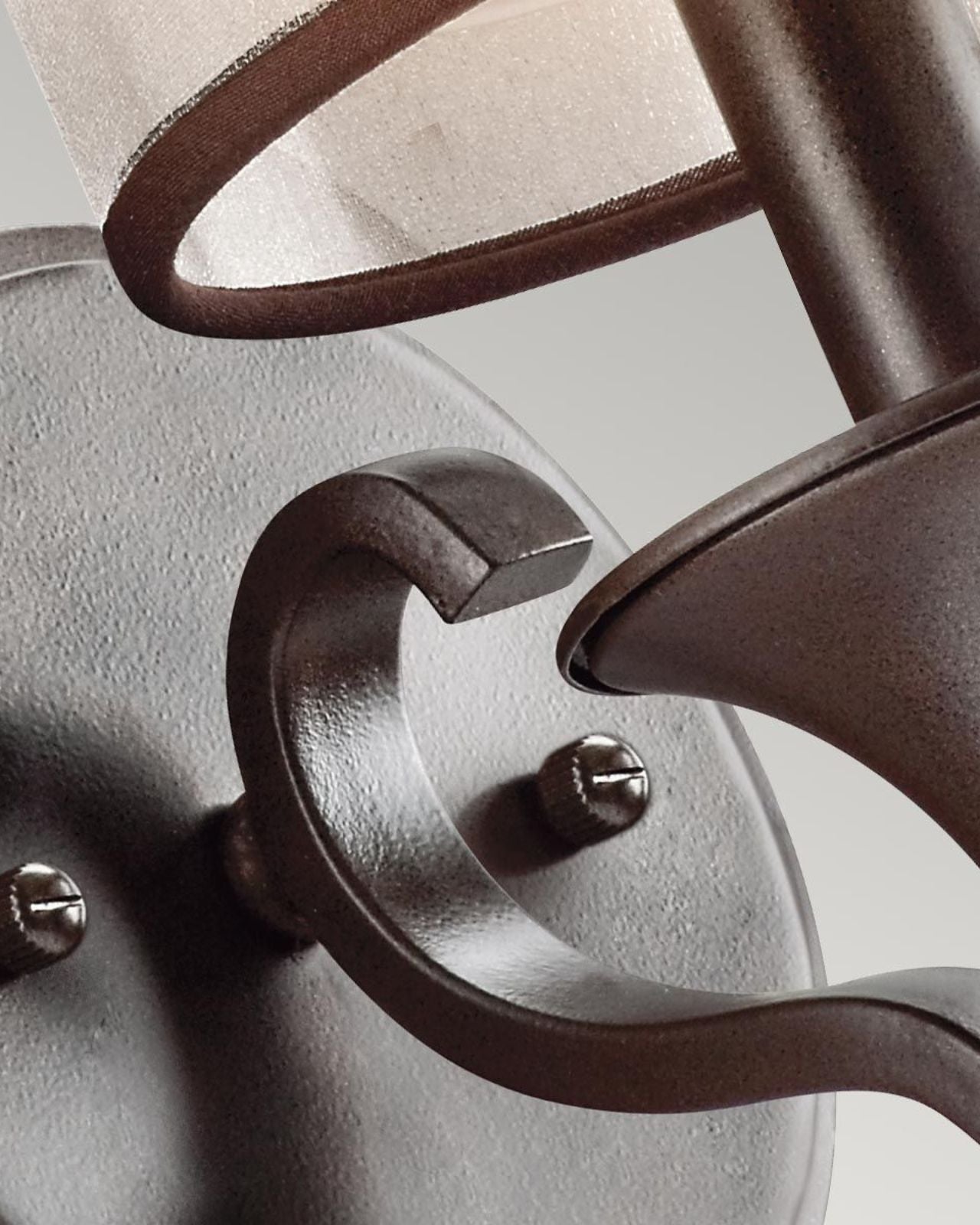 This sleek double shaded wall light in bronze is offering a beautiful contrast and melting the charm of old world style with clean modern-day materials. It has a bold, unadorned rounded-arm styling combined with avant-garde double shades made of decorative meshed screens and opal inner glass. A perfect Hamptons wall light for any room.