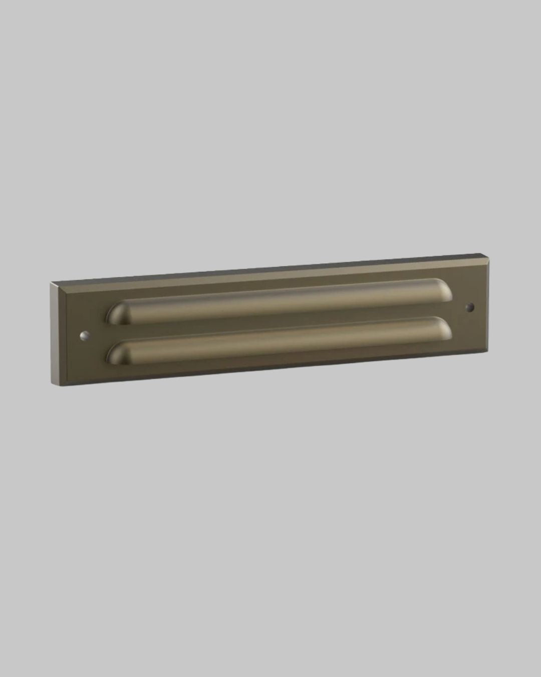 Sleek rectangular step light which has been constructed from Solid brass & is suitable for outdoor installation. It is finished in Antique Brass. This step light has an increased degree of protection with a high IP65 rating, which ensures protection from our harsh Australian climate. It can be mounted on step risers, pathways, corridors or on an exterior facade. Surface mounted fitting.