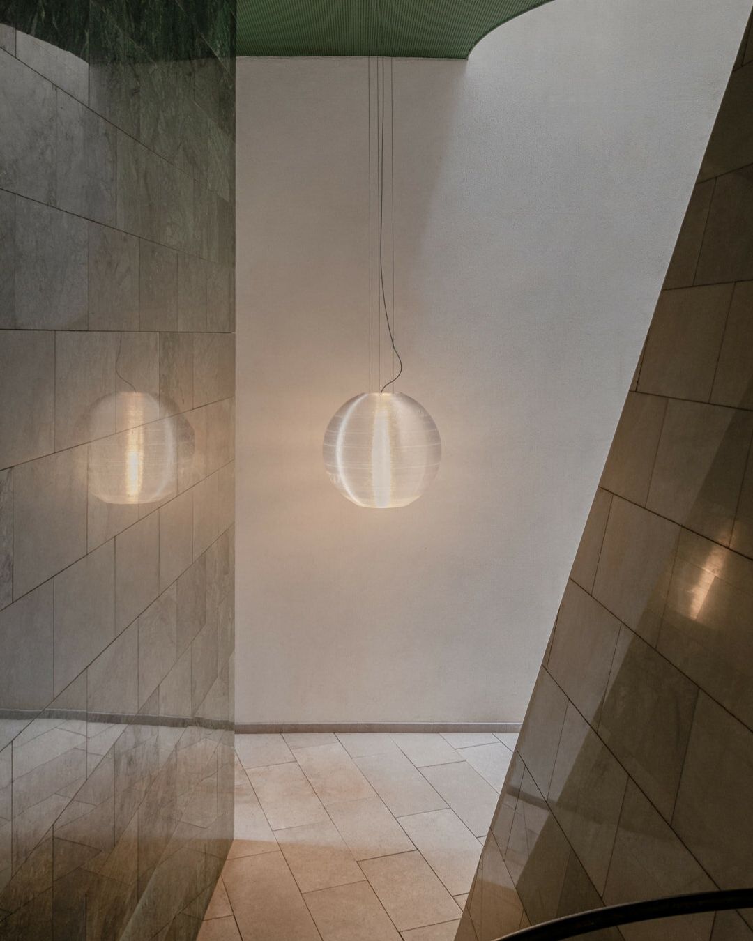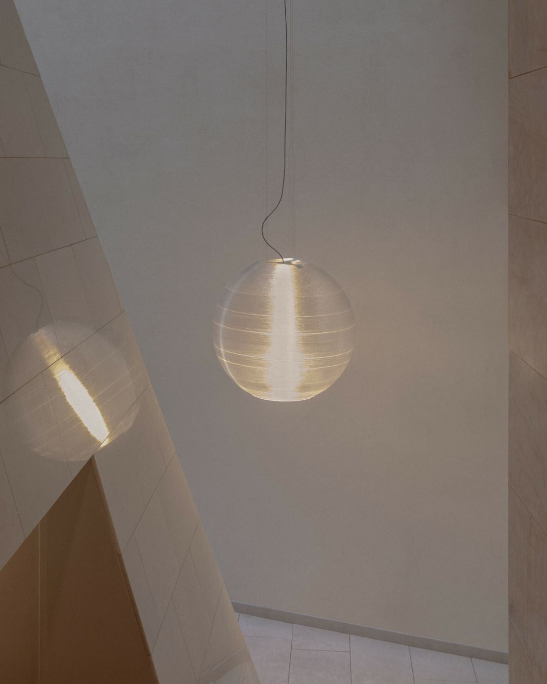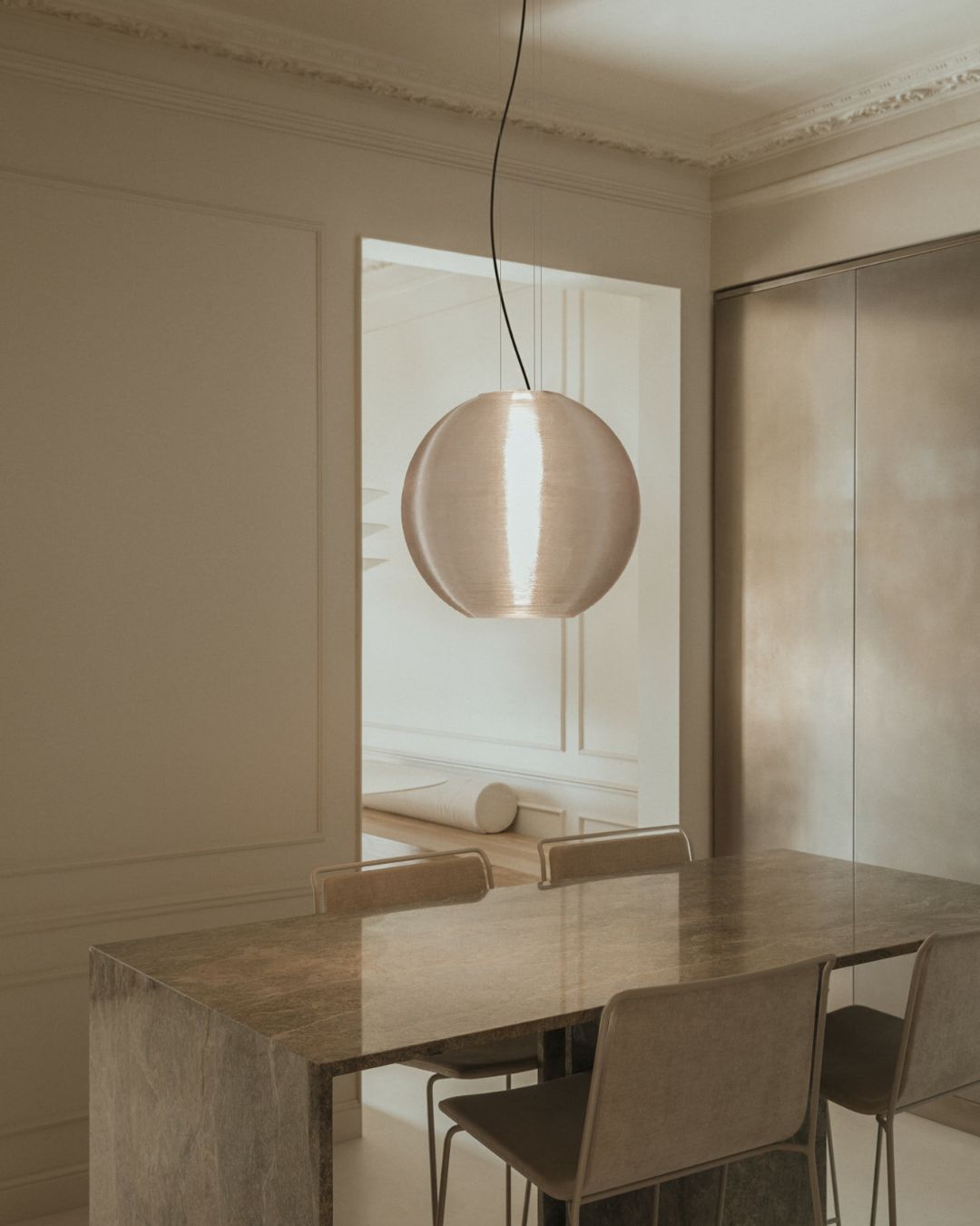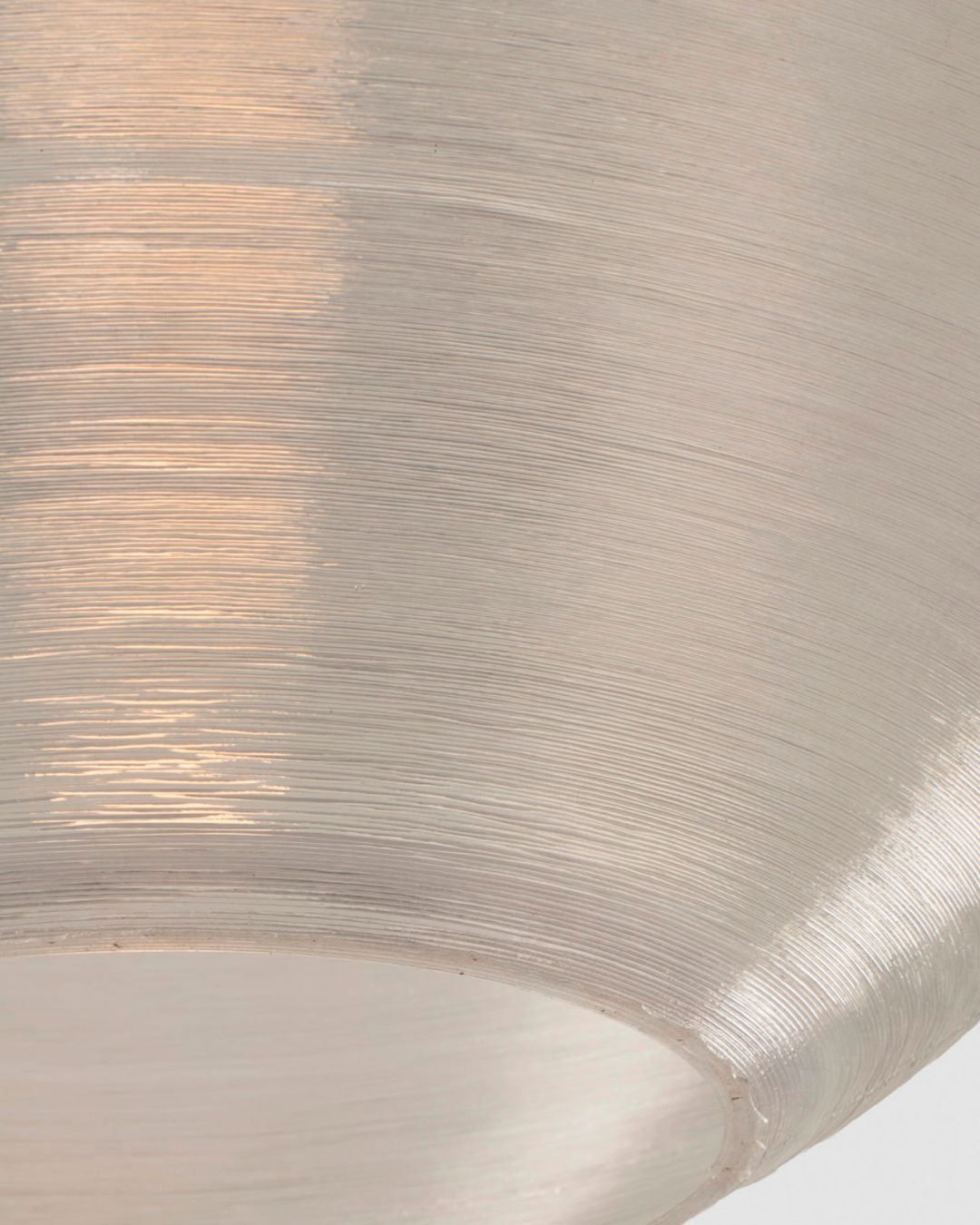 The Spherical Layered Pendant Light is an innovative design from Barcelona, using modern technology and unique materials. This fitting is created using 3D printing which creates a mesmerising striated effect that reflects and refracts light. Made from PET plastic, this fitting can be easily chemically recycled and broken down into the original raw material, ready to be used again. Available in three sizes, install in clusters or individually.