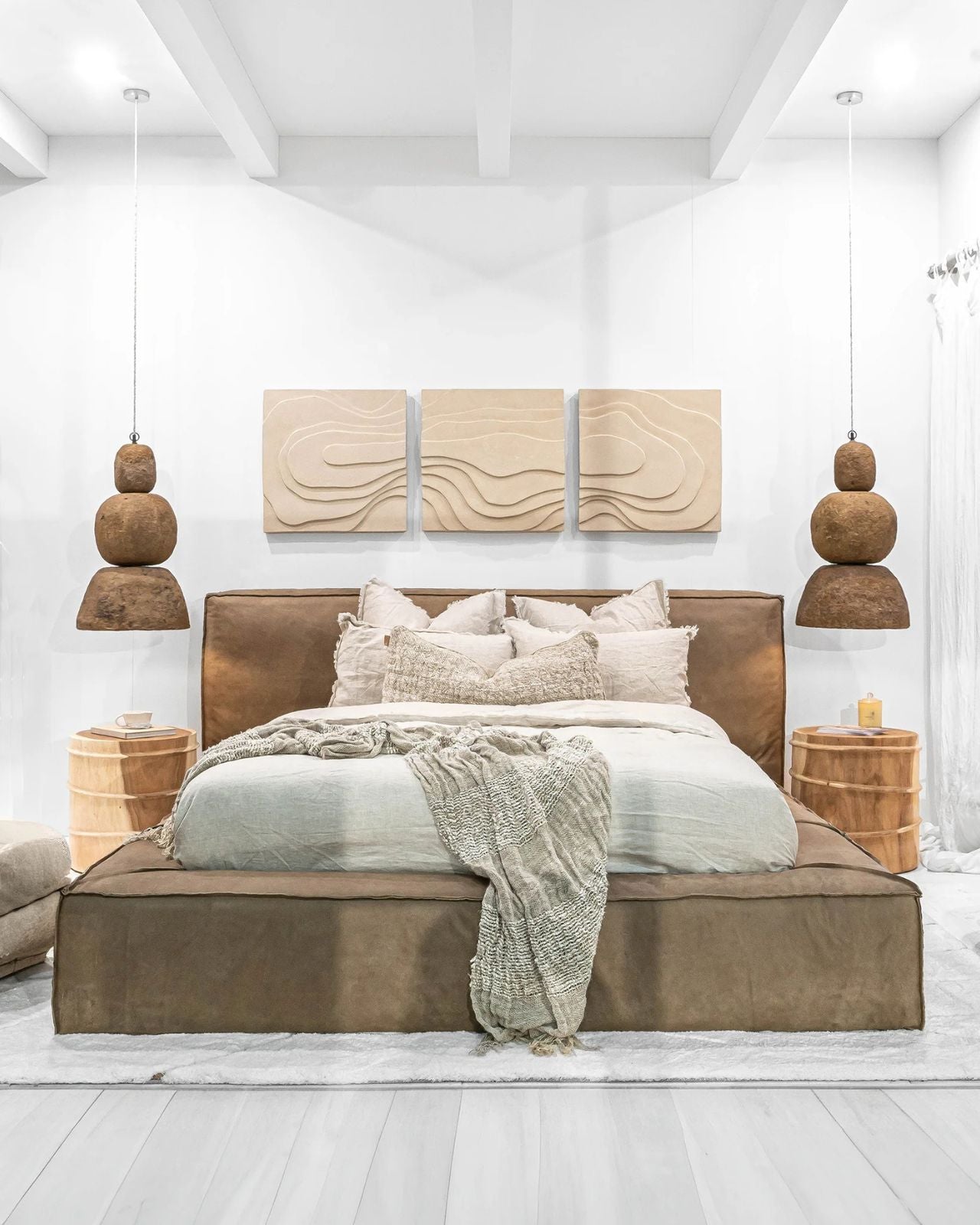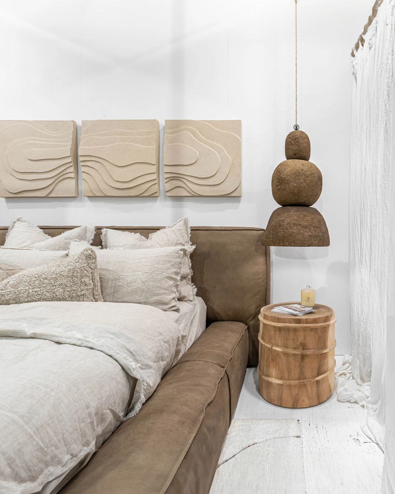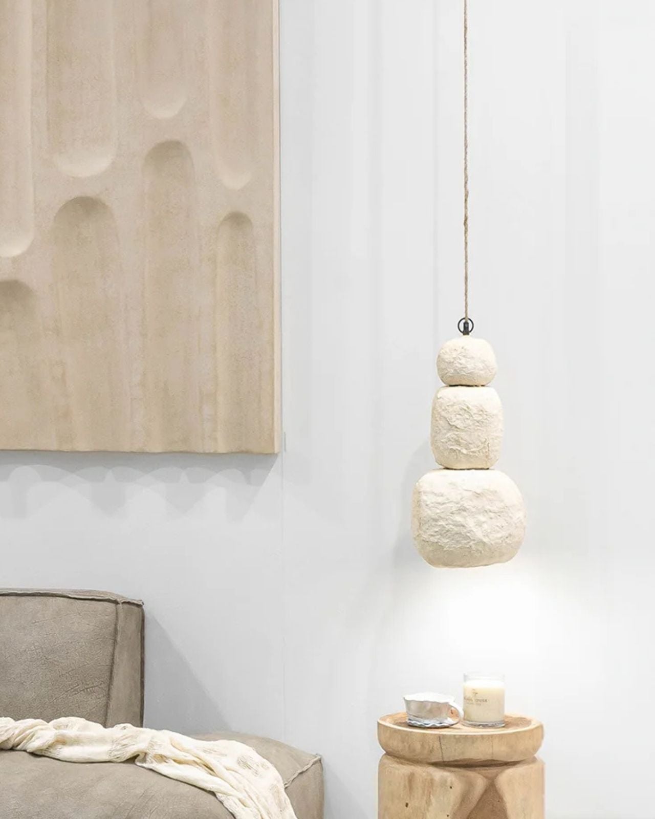 Stacked Pebble Organic Pendant | Lulah | Pendant in Rustic Neutral Bedroom