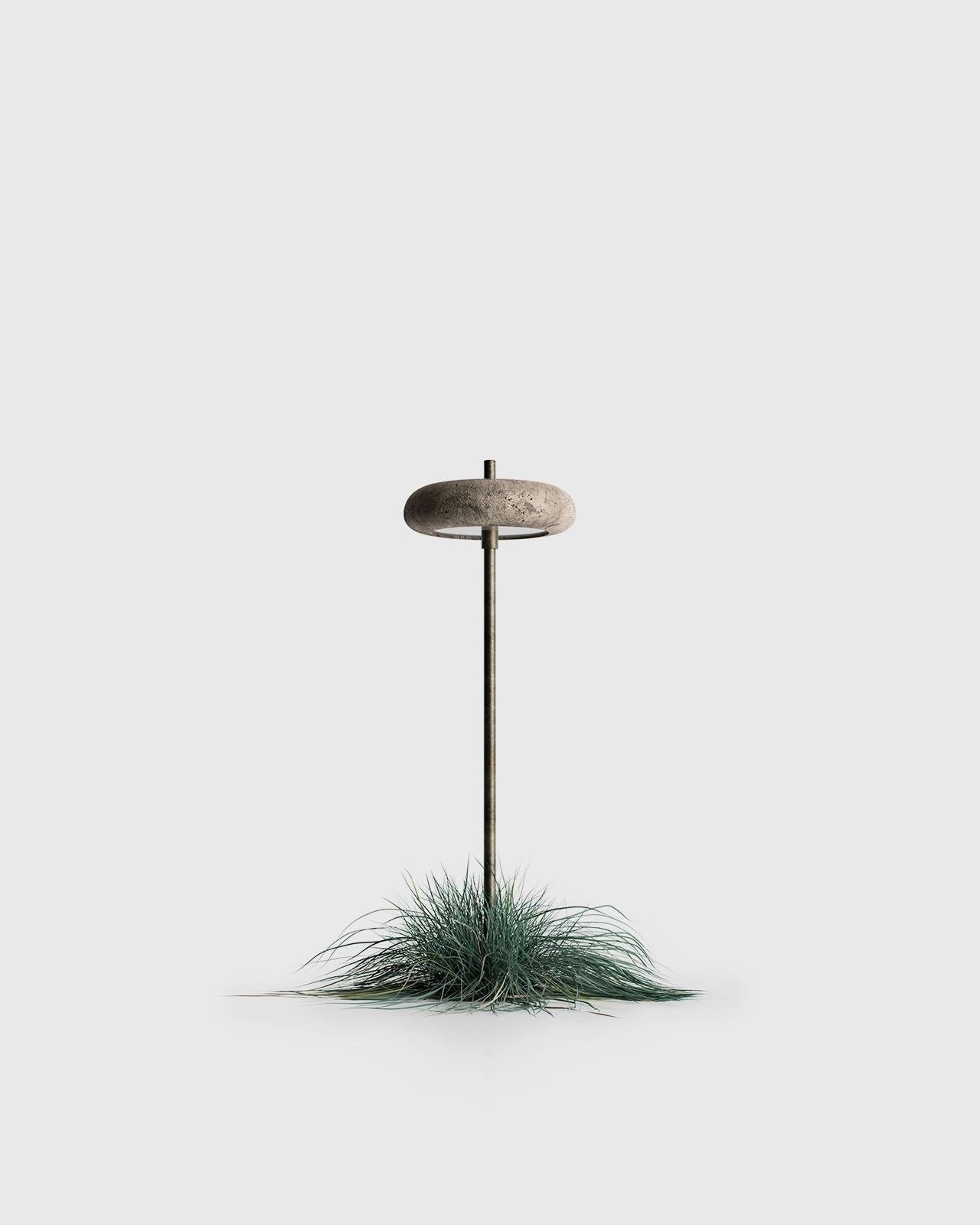 IP65 rated and designed for gardens and landscapes, this bollard light reflects the philosophy of constant change through evolving tones and materials. Available in small or large size, the antique brass structure holds a round or oval concrete shade.