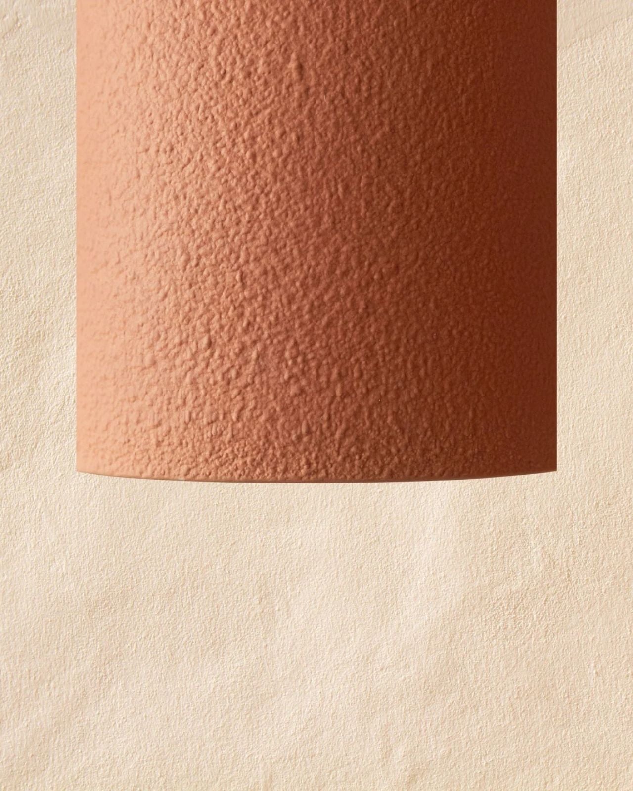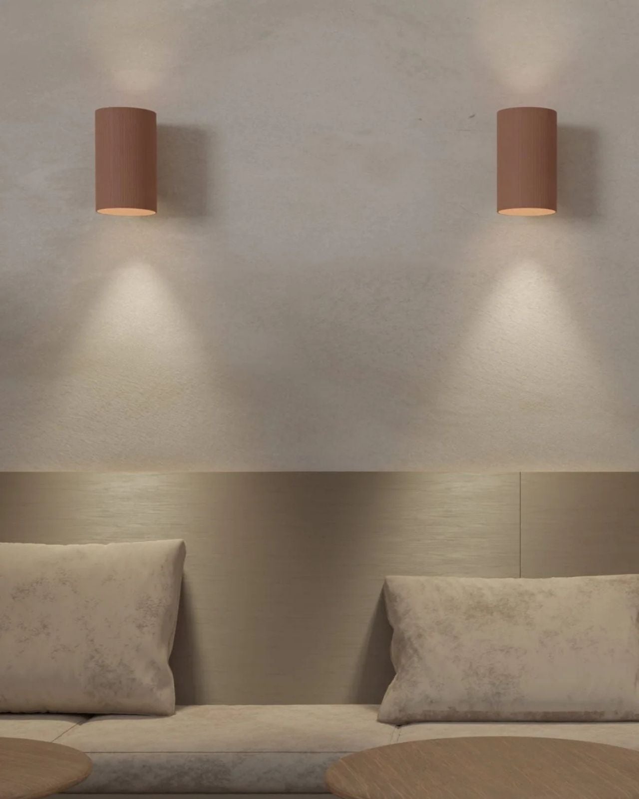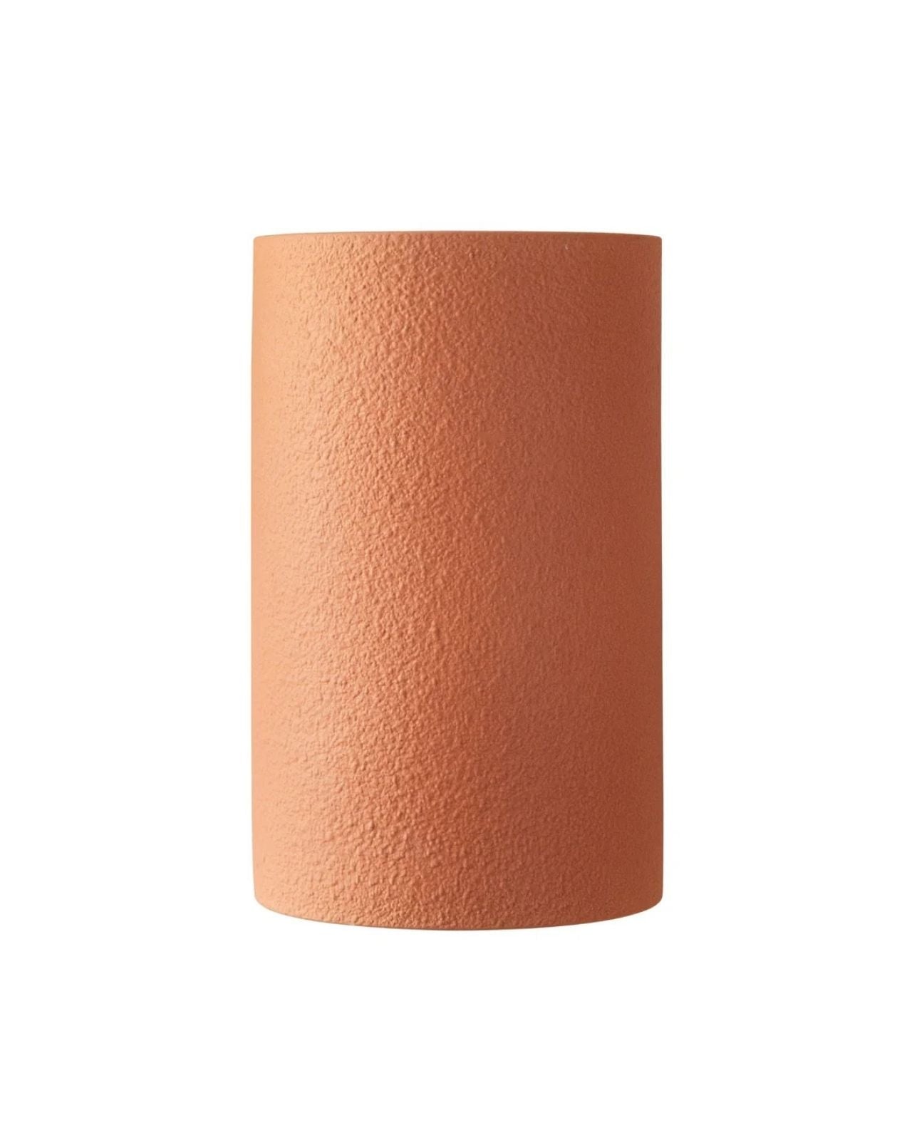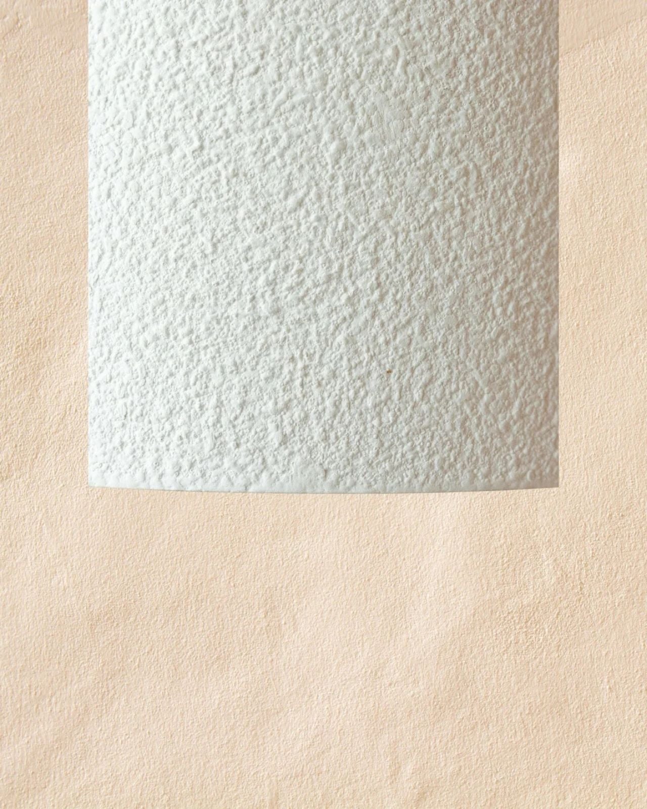 The Textured Cylindrical Wall Light is a collaboration between mechanisation and craftsmanship. This design utilises clay printers and hand-carved moulds crafted by skilled artisans in Southern Spain. The result is a textured finish that embodies nature and contemporary technology. Choose between a simple white backplate or a ceramic frame around the white backplate that matches the fitting's finish. With an IP rating of IP44, install in bathrooms or exterior protected areas.