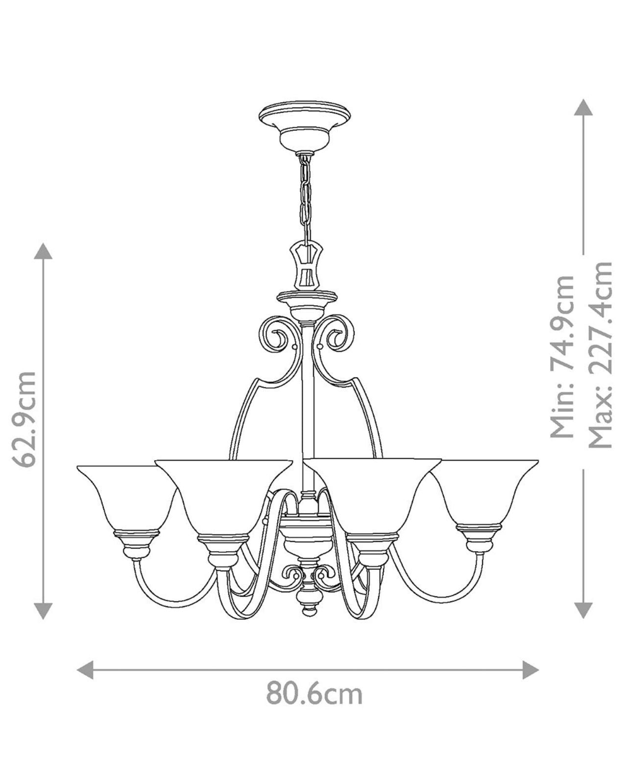 This elegant chandelier is a perfect example of a timeless traditional design. This piece features an elegant frame coated in an antique bronze finish, which is complemented with a faux alabaster glass which adds a classic aesthetic. This piece would look grand suspended either in your foyer, dining, lounge or bedroom creating a statement in your space.