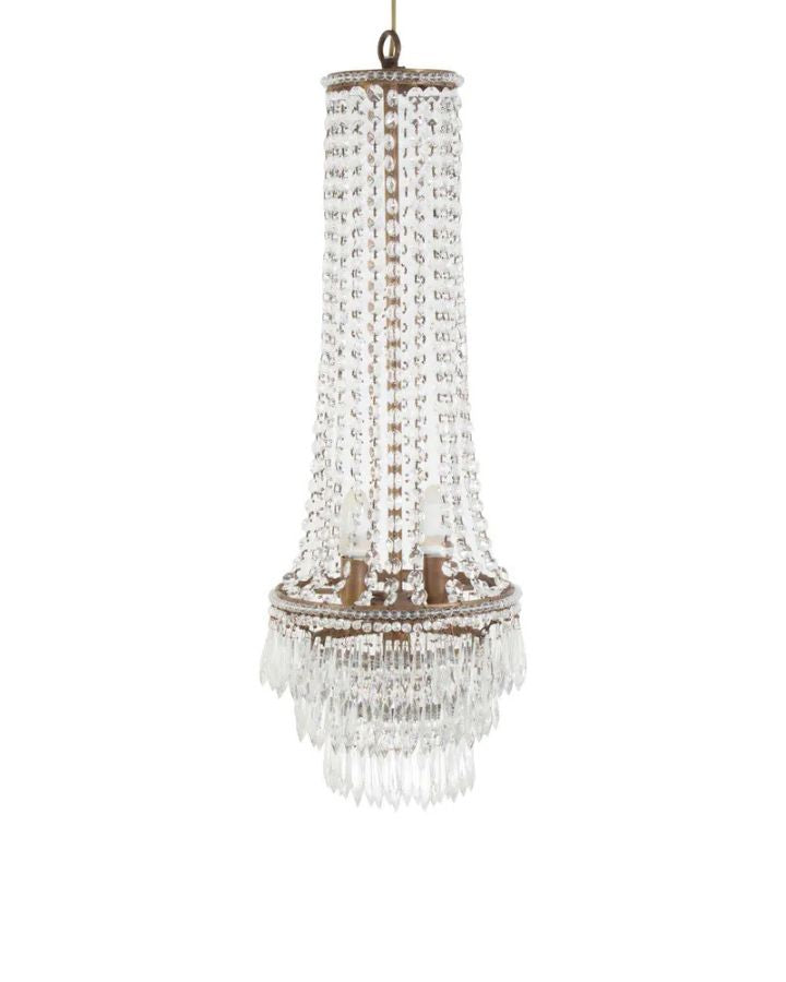 Add a refined sense of sophistication to your interior with this exquisite Empire glass chandelier. Featuring an elongated silhouette and cascading crystals, it captures and refracts light beautifully, creating a radiant focal point in any room. Crafted with precision and timeless appeal, this chandelier embodies enduring luxury a statement piece that transcends trends and enhances both classic and contemporary spaces alike.