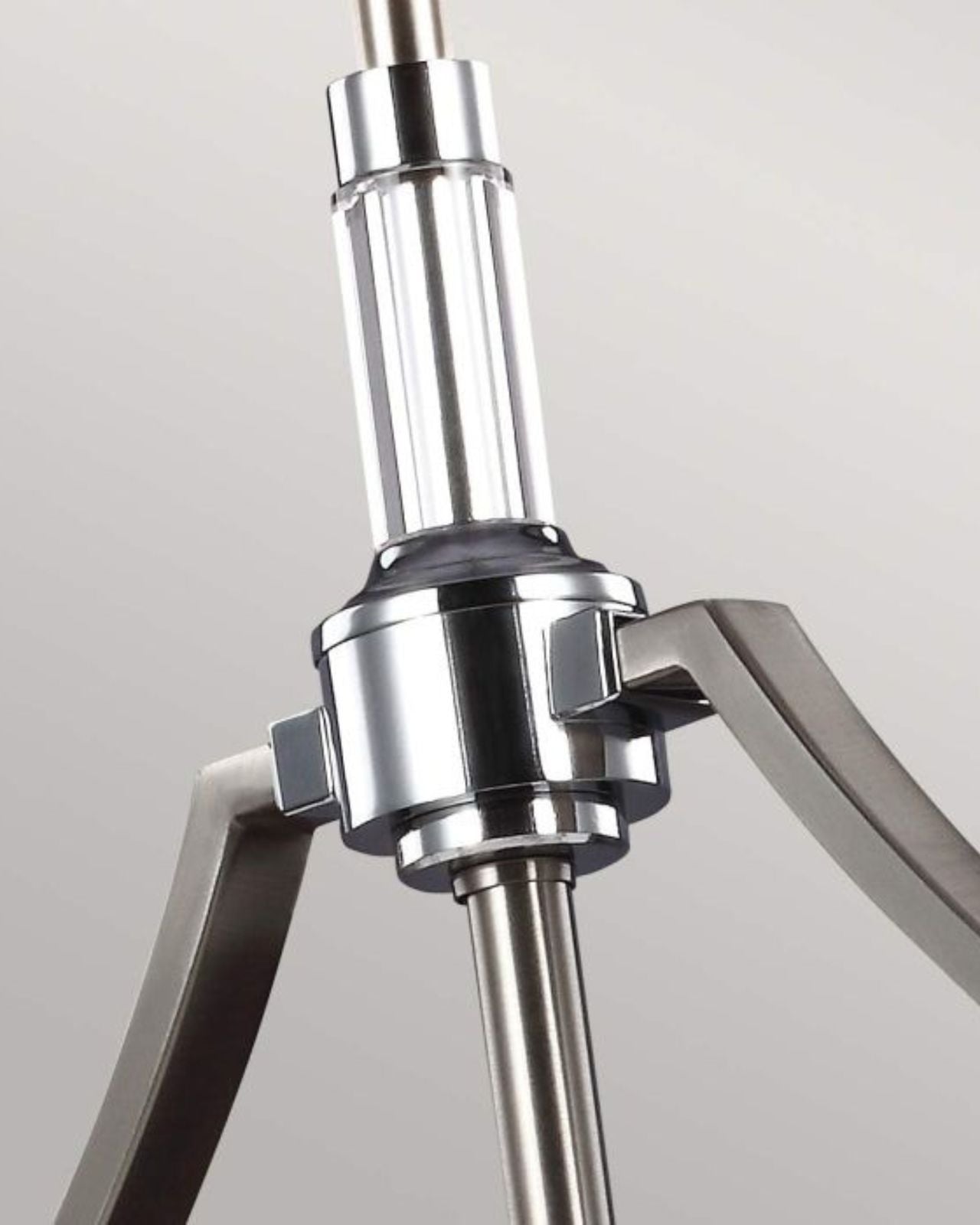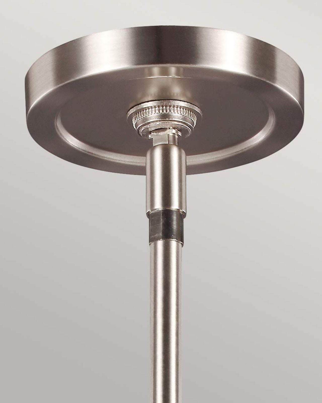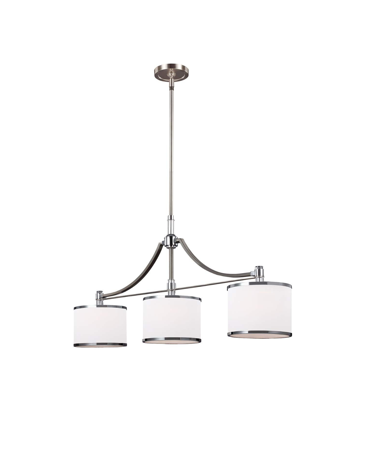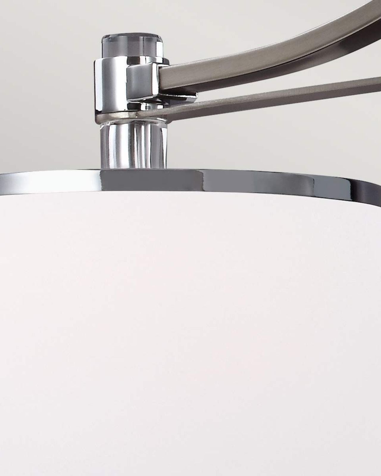 A modern twist to a translucent style pendant with sleek satin nickel arms that are accented with crisp chrome components. This tri drop pendant can be used to enhance the atmosphere of your kitchen, dining area or in your restaurant/café.
