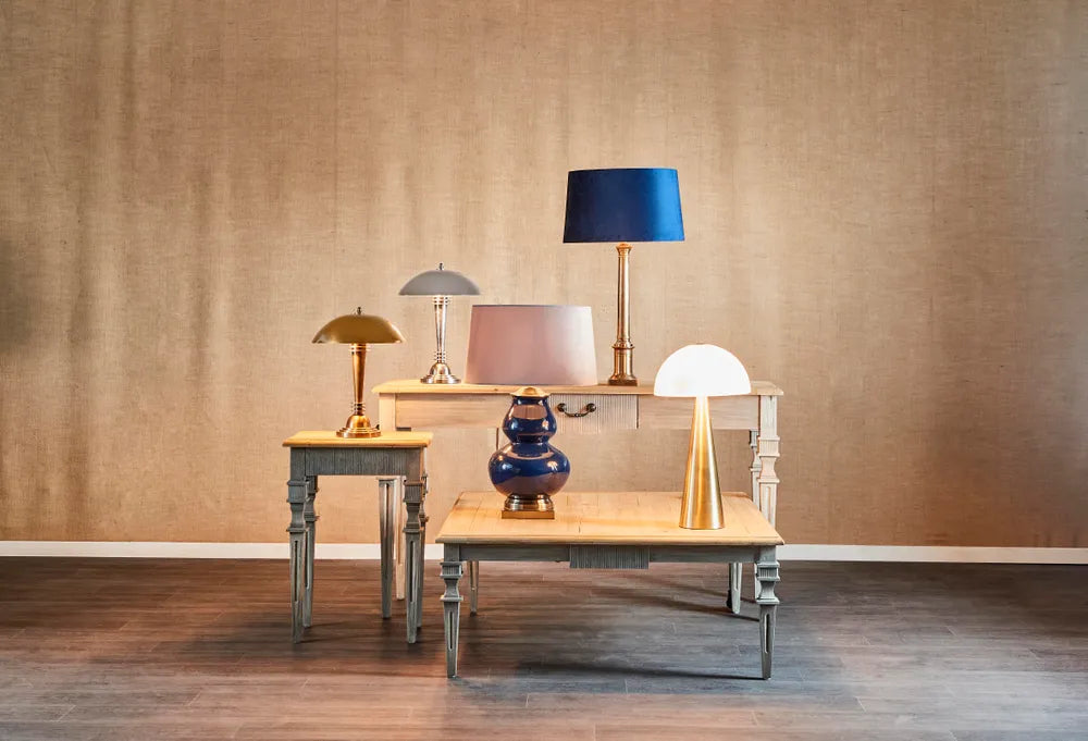 This lamp embodies classic Art Deco design, featuring a symmetrical shape and a tiered circular base with a tapered stem and three rings. Available in antique silver and brass, its timeless elegance makes it a popular choice for both vintage and modern home interiors. The dome-shaped shade adds an extra touch of sophistication to any eclectic or vintage-style room.