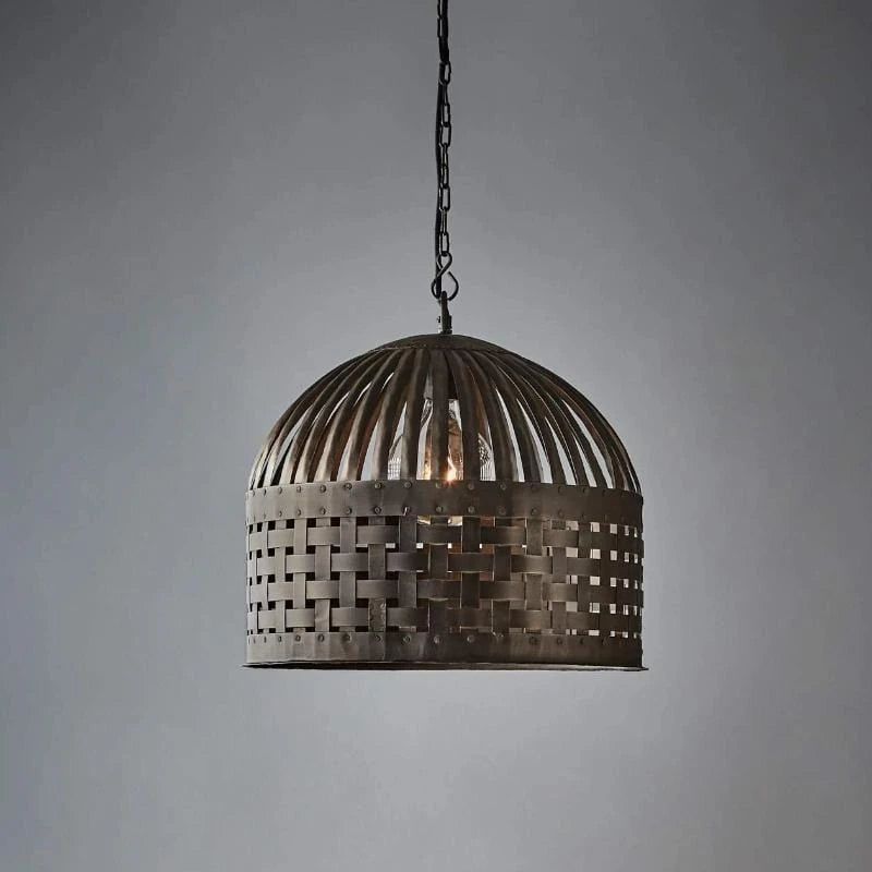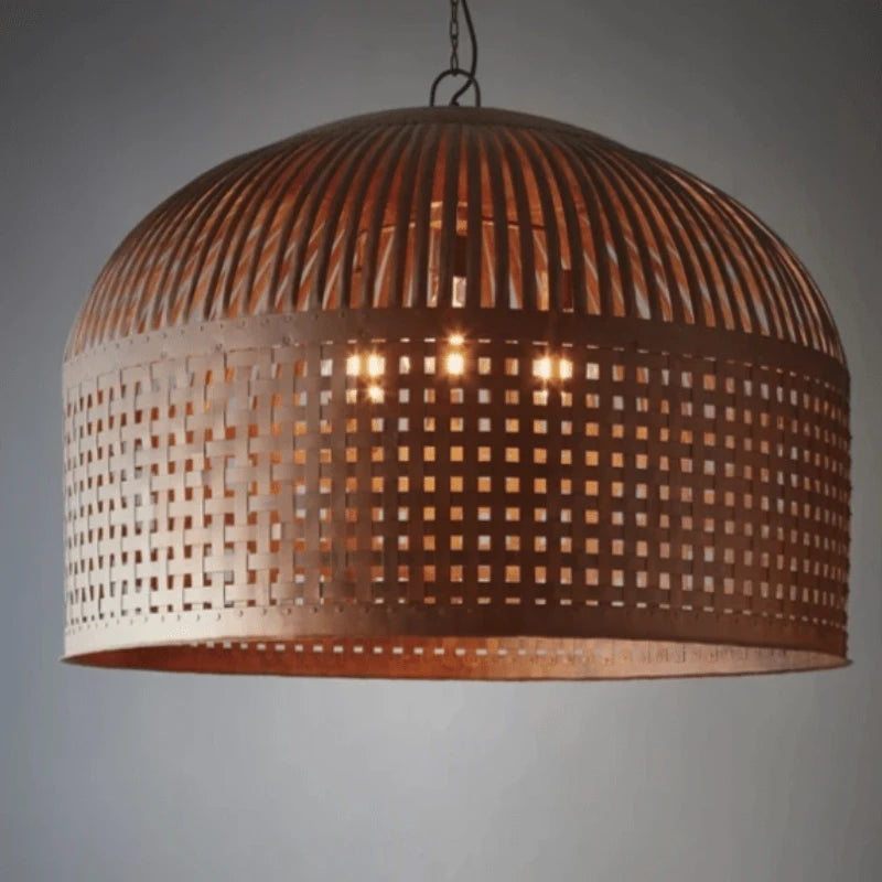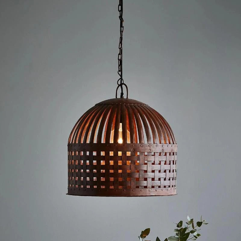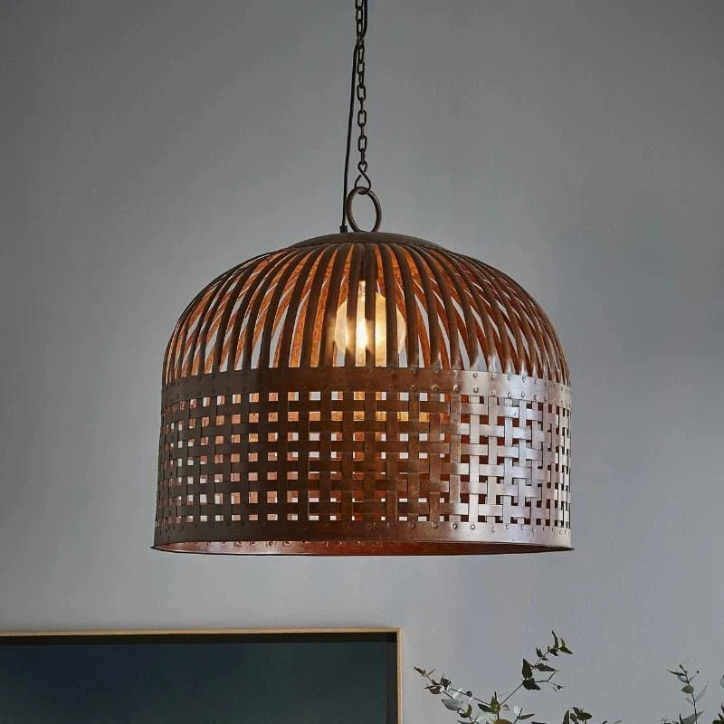 Bring the luxurious resort styling into your own home with a Metal Antique Rust Pendant Light that creates an amazing focal point in any room. The Woven Iron Stripes Pendant Light features individual lengths of iron strips that are woven together and held in place by rivets, suspended beneath a graceful dome. Complementing natural and coastal styles this hanging pendant light is a great way to add texture and warmth into a bedroom, kitchen, dining or commercial space. Available in 3 sizes and 3 colours (Antique Black, Rust and White).