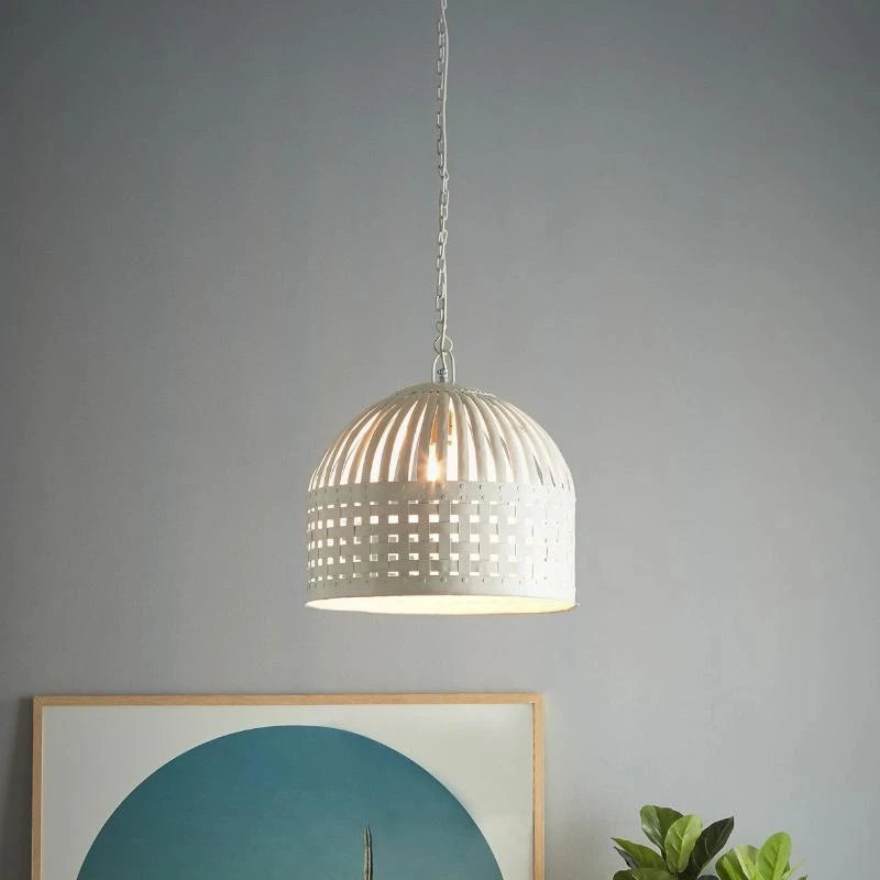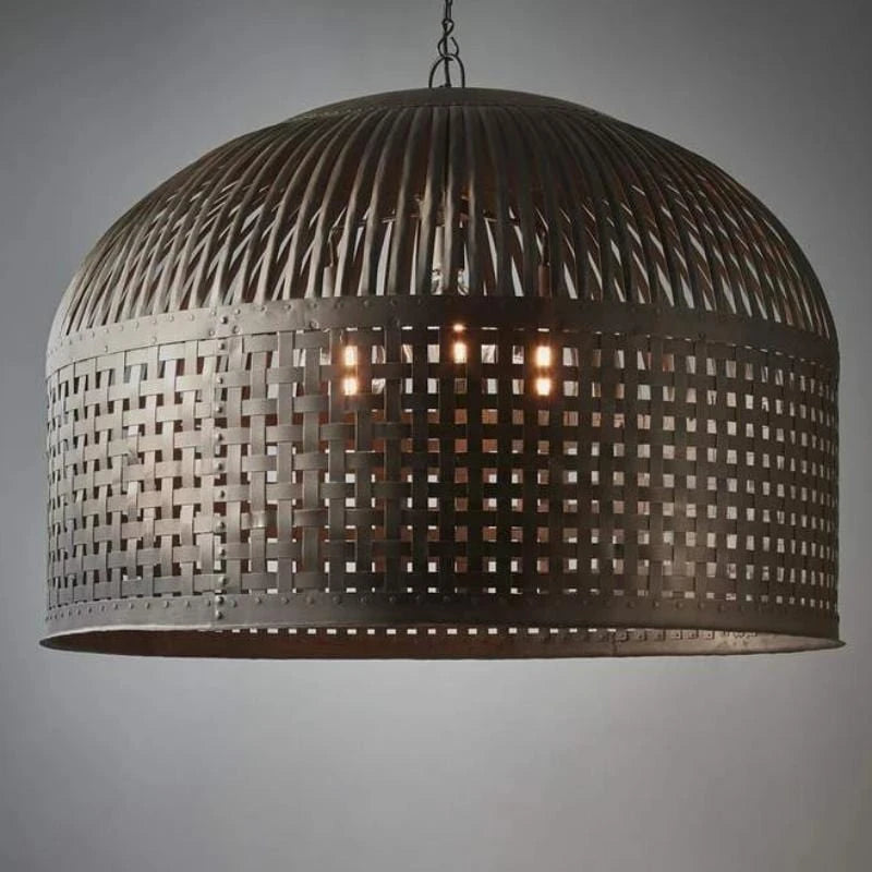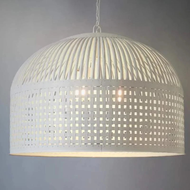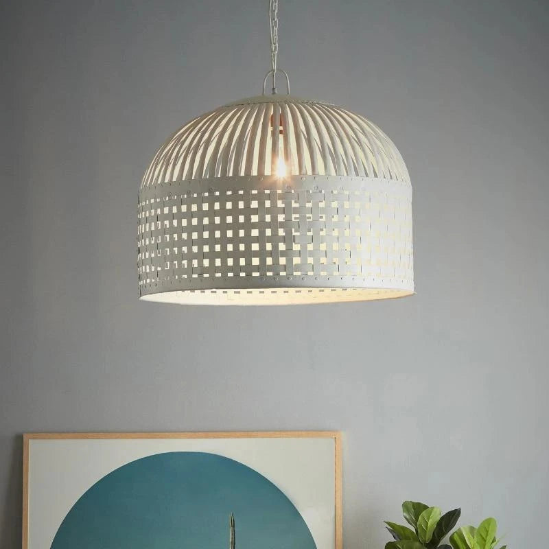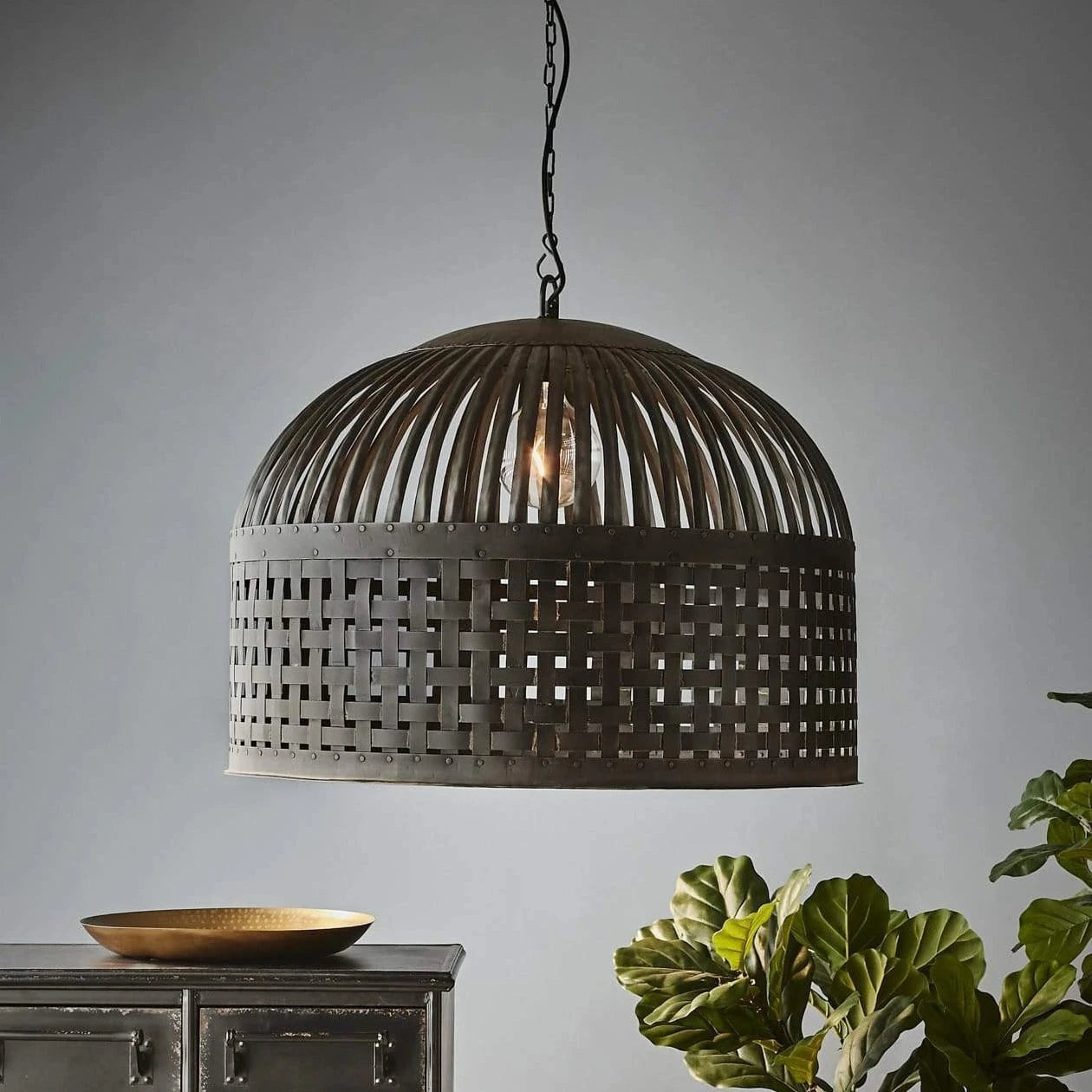 Bring the luxurious resort styling into your own home with a Metal Antique Rust Pendant Light that creates an amazing focal point in any room. The Woven Iron Stripes Pendant Light features individual lengths of iron strips that are woven together and held in place by rivets, suspended beneath a graceful dome. Complementing natural and coastal styles this hanging pendant light is a great way to add texture and warmth into a bedroom, kitchen, dining or commercial space. Available in 3 sizes and 3 colours (Antique Black, Rust and White).